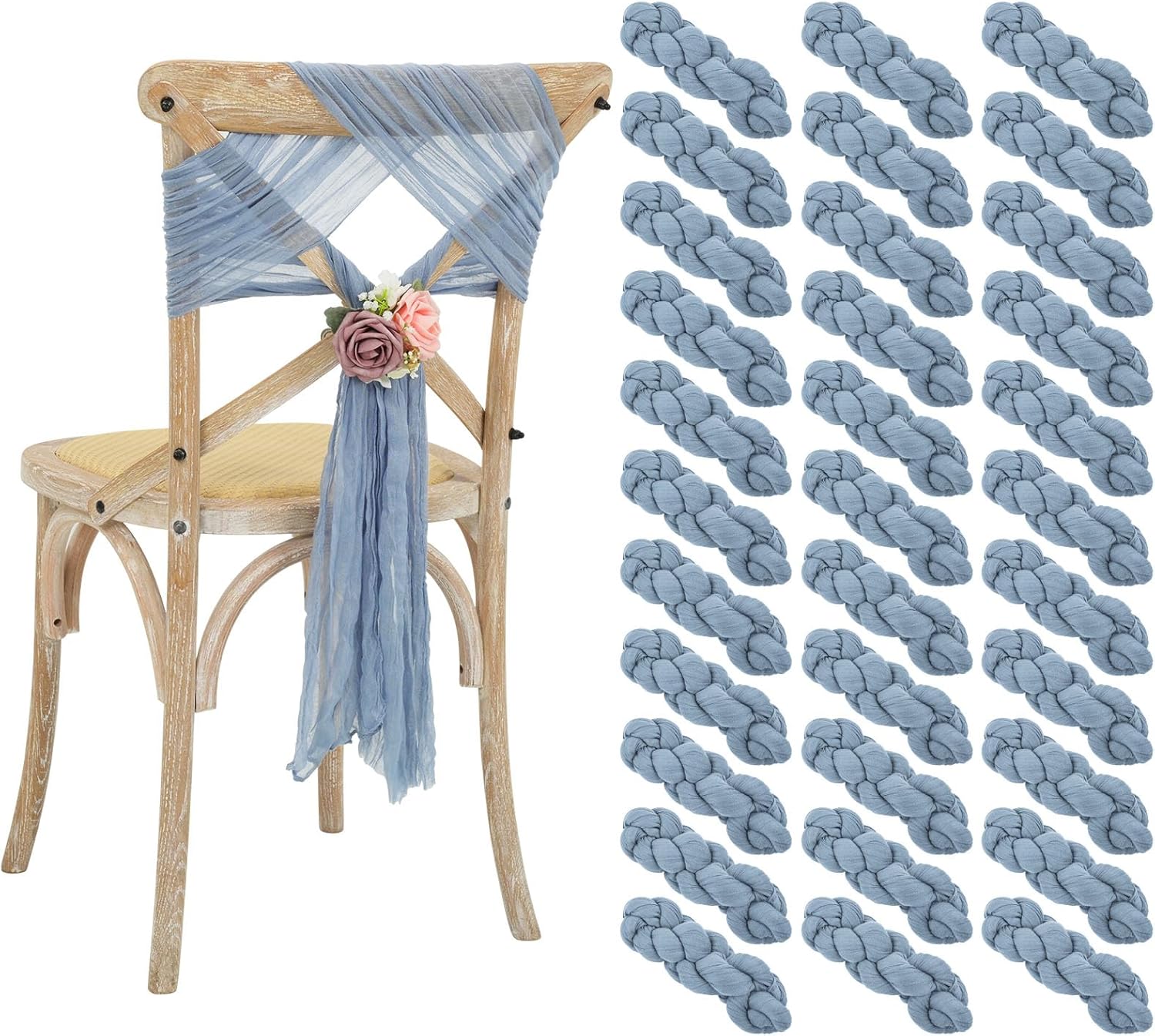 50 PCS Cheesecloth Chair Sashes Bows Wedding Aisle Decorations Chair Ribbon Ties Back Sash for Wedding Party Events Banquet Chair Cover Decoration (Dusty Blue)