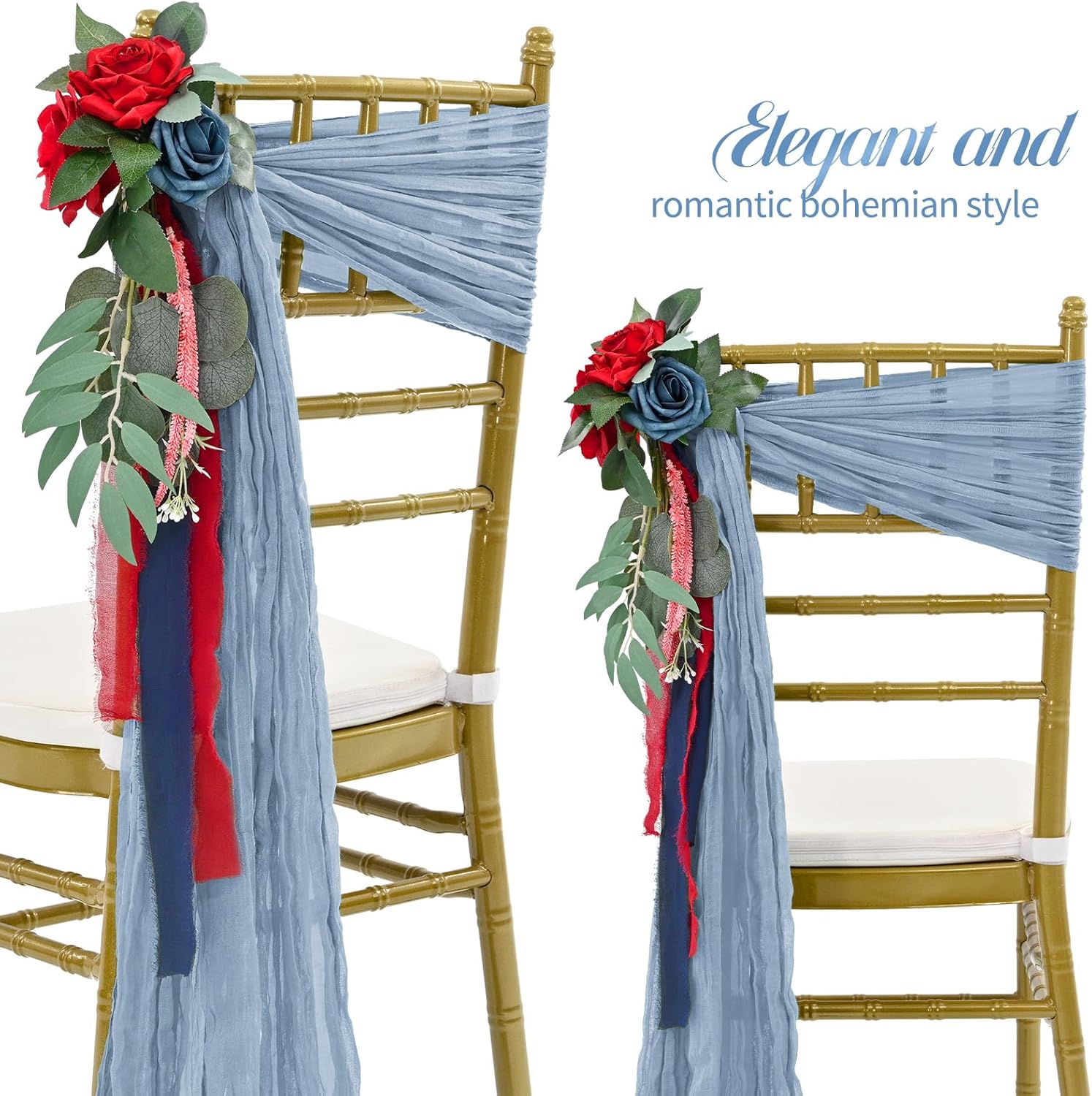 • 【Package includes】You will receive 50 pieces dusty blue cheesecloth chair sashes, nough quantity for your daily needs. and they will make your simple chairs more elegant, high-quality cheesecloth chair bows fabric beautifully transforms chairs for a stunning display that makes each guest feel regal.