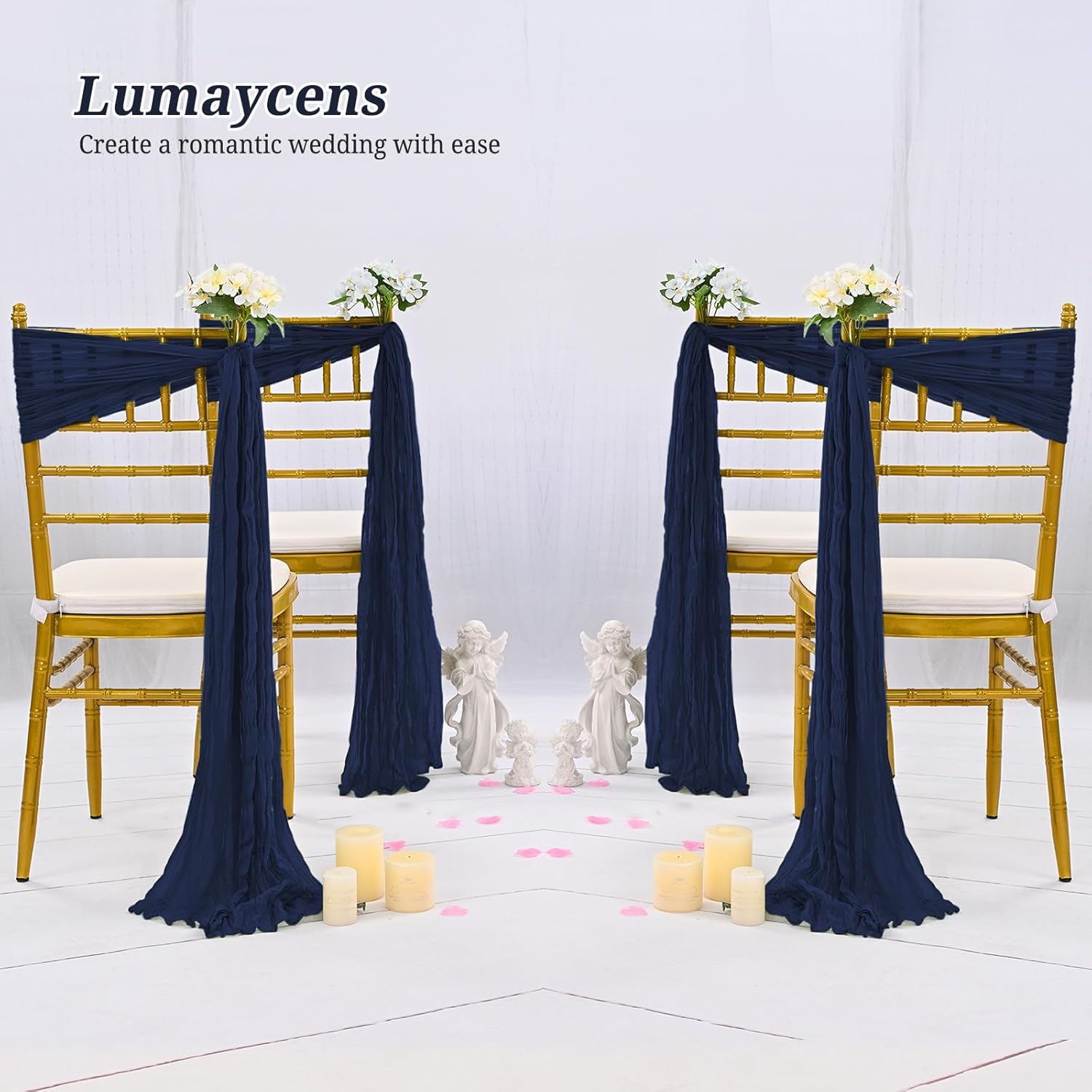 • 【Package includes】You will receive 50 pieces navy blue cheesecloth chair sashes, nough quantity for your daily needs. and they will make your simple chairs more elegant, high-quality cheesecloth chair bows fabric beautifully transforms chairs for a stunning display that makes each guest feel regal.