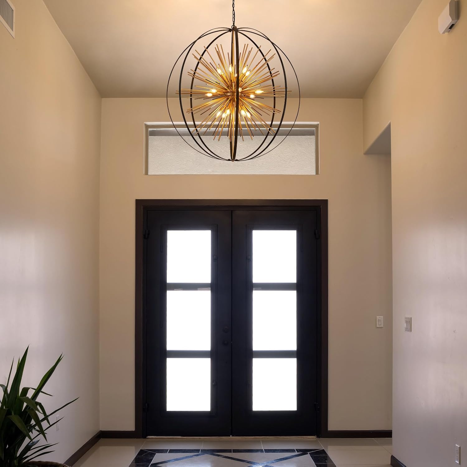 • 【Stunning Firework Design】The Black and Gold Sputnik Chandelier features a captivating spherical body that resembles a preserved firework, creating a striking focal point when illuminated. This Modern Chandelier combines contemporary and vintage elements, making it a perfect addition to various settings such as the living room, kitchen island, dining room, hallway, stairway, entryway, as well as restaurants.