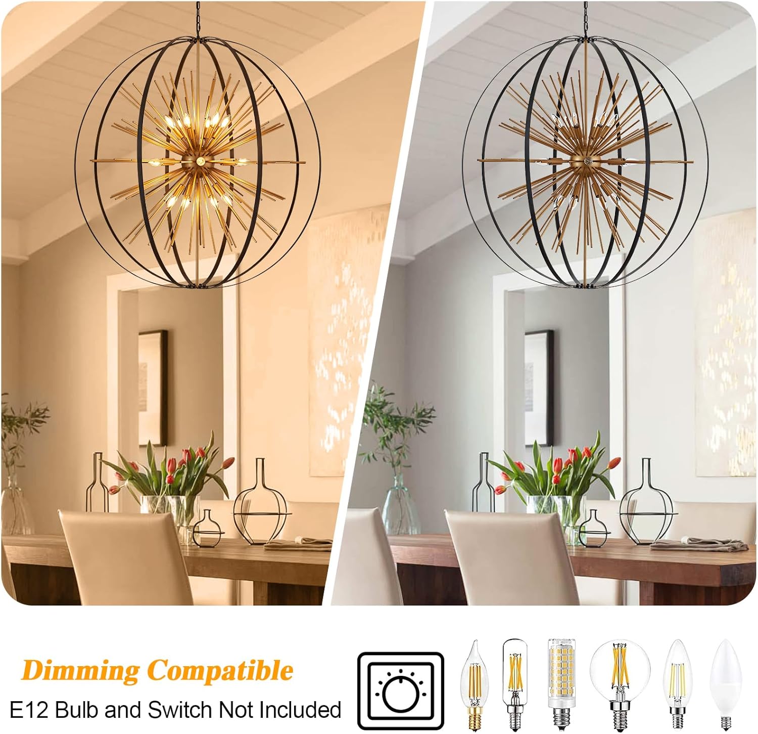 • 【Compatible with Various Bulbs】Sputnik Light Fixture features compatibility with dimmer,18 E12 bulbs base (Switches and Bulbs NOT Included). You can also install LED, Incandescent, or CFL bulbs. The Chandeliers For Entryway emit a warm and inviting glow, creating a cozy atmosphere that elevates the mood of your space.