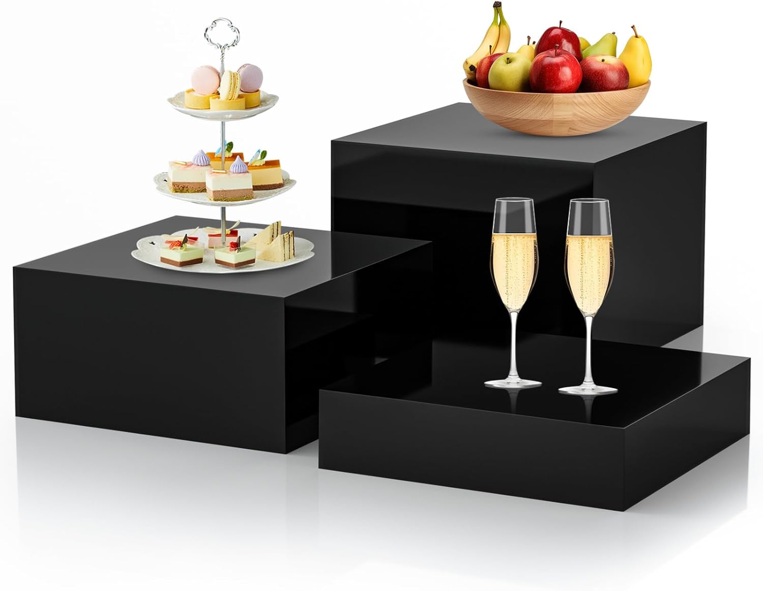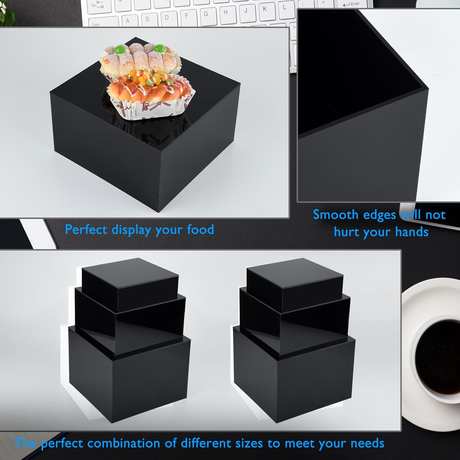 3Pcs Black Buffet Risers Acrylic Boxes Display Food Risers for Buffet Table Platter Parties Weddings Catering Dessert Collectibles Figures Show ( 6''x7''x8'')