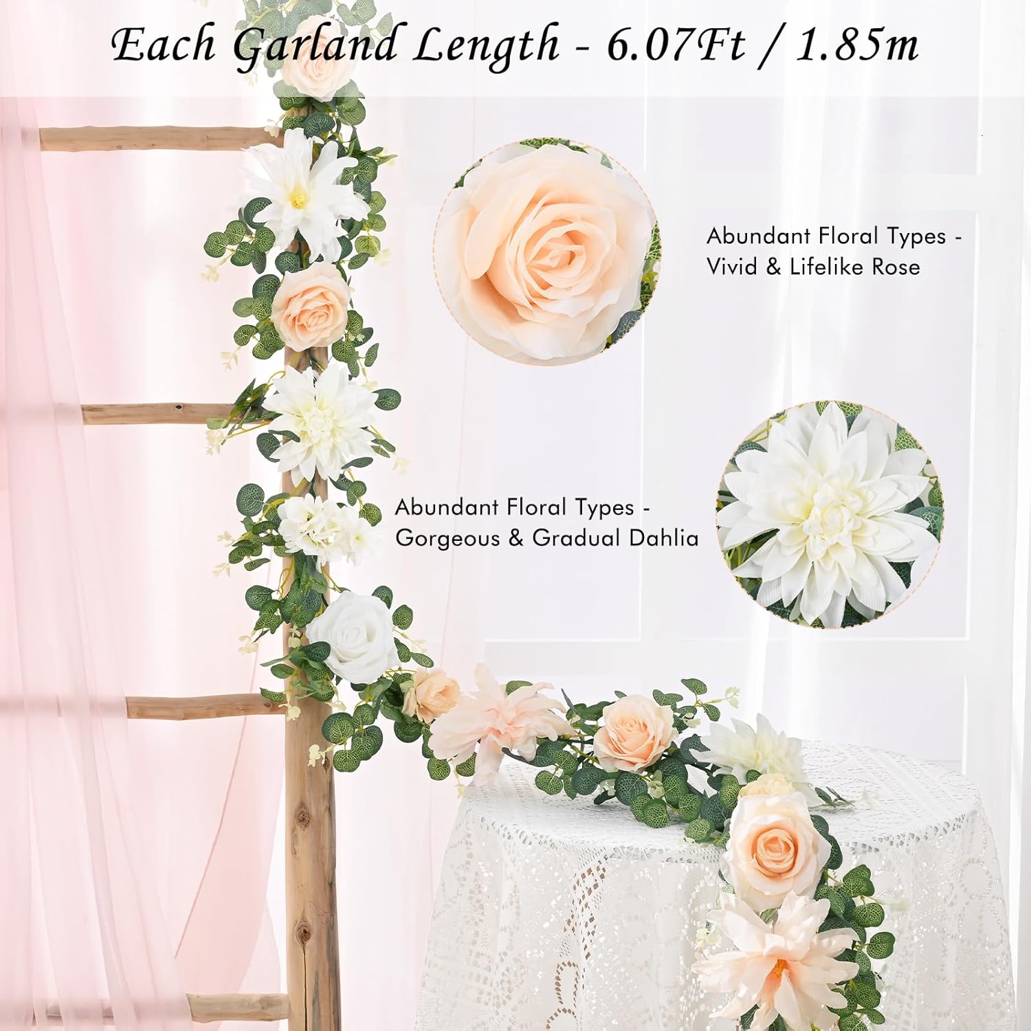 • 🤍IDEAL SIZE & VIBRANT COLORS: Embrace the natural enchantment with our artificial flower garland. You will receive a delicate flower garland with 5 exquisite floral varieties in 4 harmonious hues. Perfect size (Total Length - 6.07ft/1.85m) to add beauty to your home decor, without any of the upkeep.