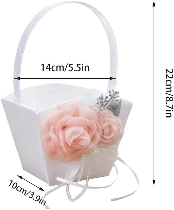 • ๐Ÿ“[Size and Info]*Pillow Size: Approx 8' x 8" inches . Please note White with 6" pillow, is smaller than the 8" ones. Basket size :Diameter: Approx 4.92 inch Height with Handle:Approx 8.27 inches. Size: Material: Satin, Ribbon and Rhinestone. Package Included: 1 x Ring Pillow and 1 x Baskets
