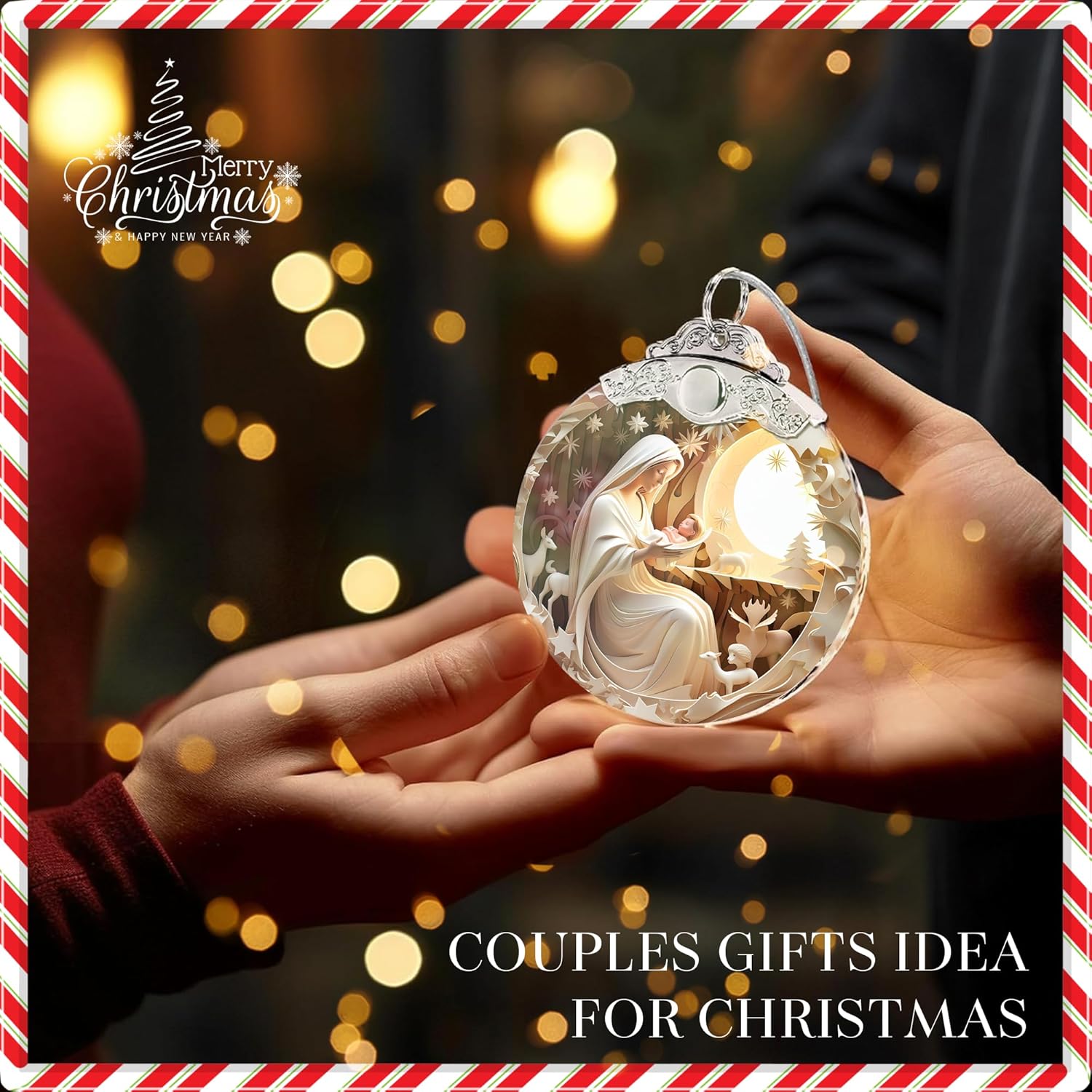 Christmas Ornament, White Nativity Design, Religious Christmas Ornament, Hanging Ornament, Acrylic, 2023, 4 INCH, for Holiday Party