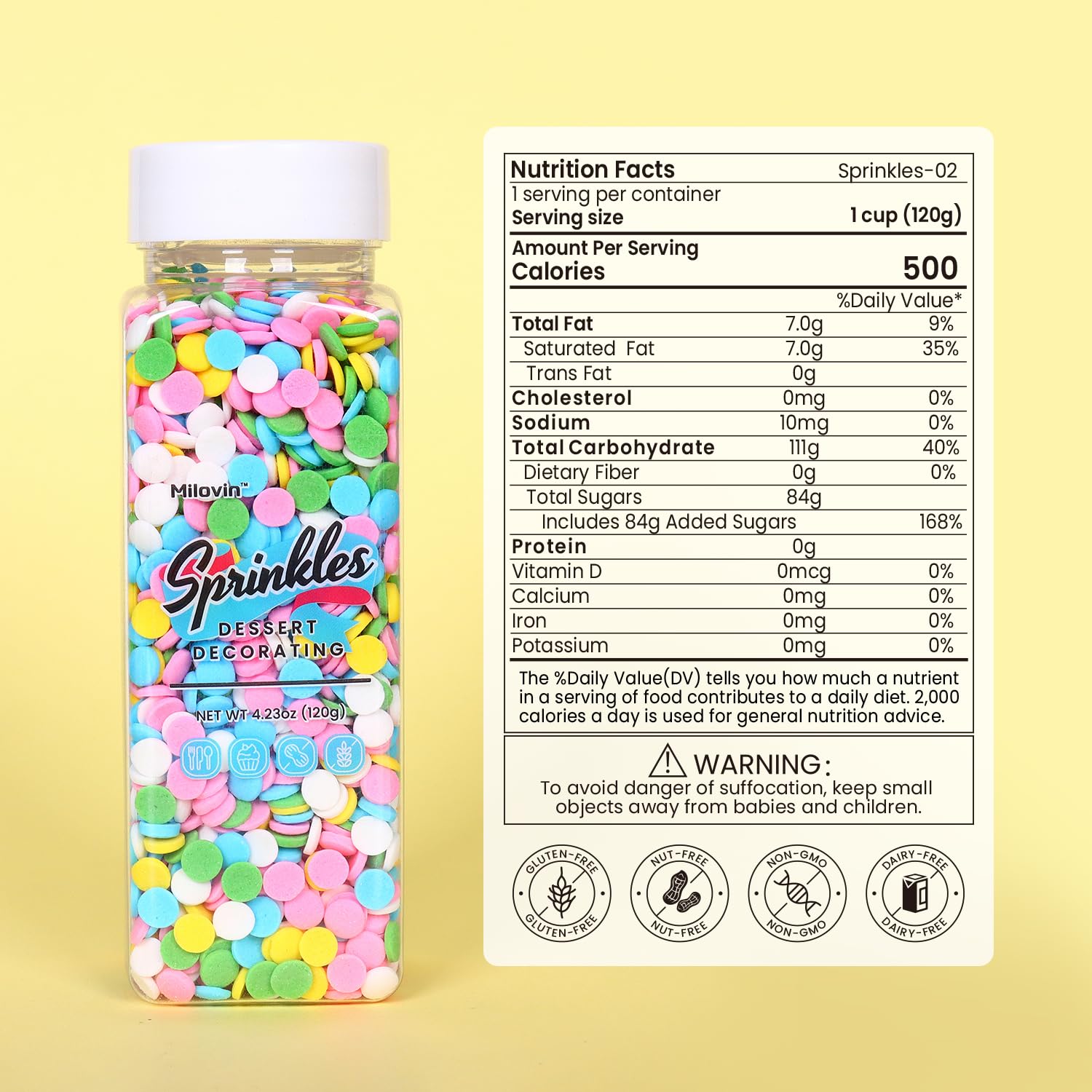 • High Quality and Safe: Made with food-grade ingredients. Edible, Gluten-free, Nut-free, Dairy-free, Non-GMO. Our pastel confetti sprinkles meet American food standards and guard your and your family's health.