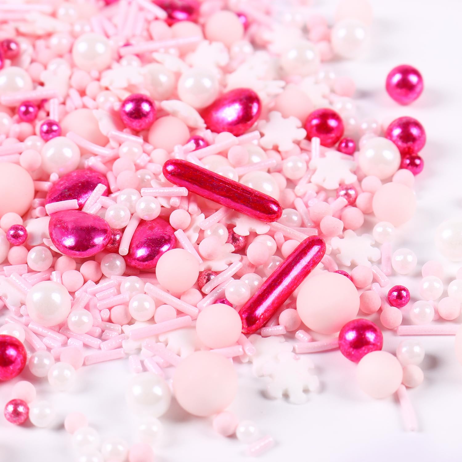 Pink Sprinkles for Cake Decorating, Pink Pearl Sprinkles, Metallic Sprinkle Mix for Cupcakes, Macaron, Ice Cream, and Cookies(120g/4.23oz)