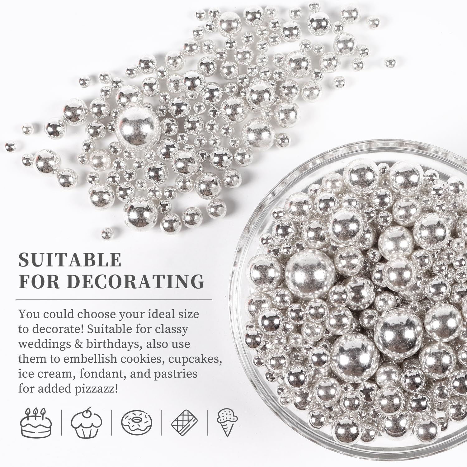 • Pearls for Cake Decorating: The perfect silver pearl sprinkles for cakes, cupcakes, ice cream, cookies, macarons, donuts, and more. Make them sparkle and 3D. It's best for decorating after your items have already been baked, avoid melting during baking.