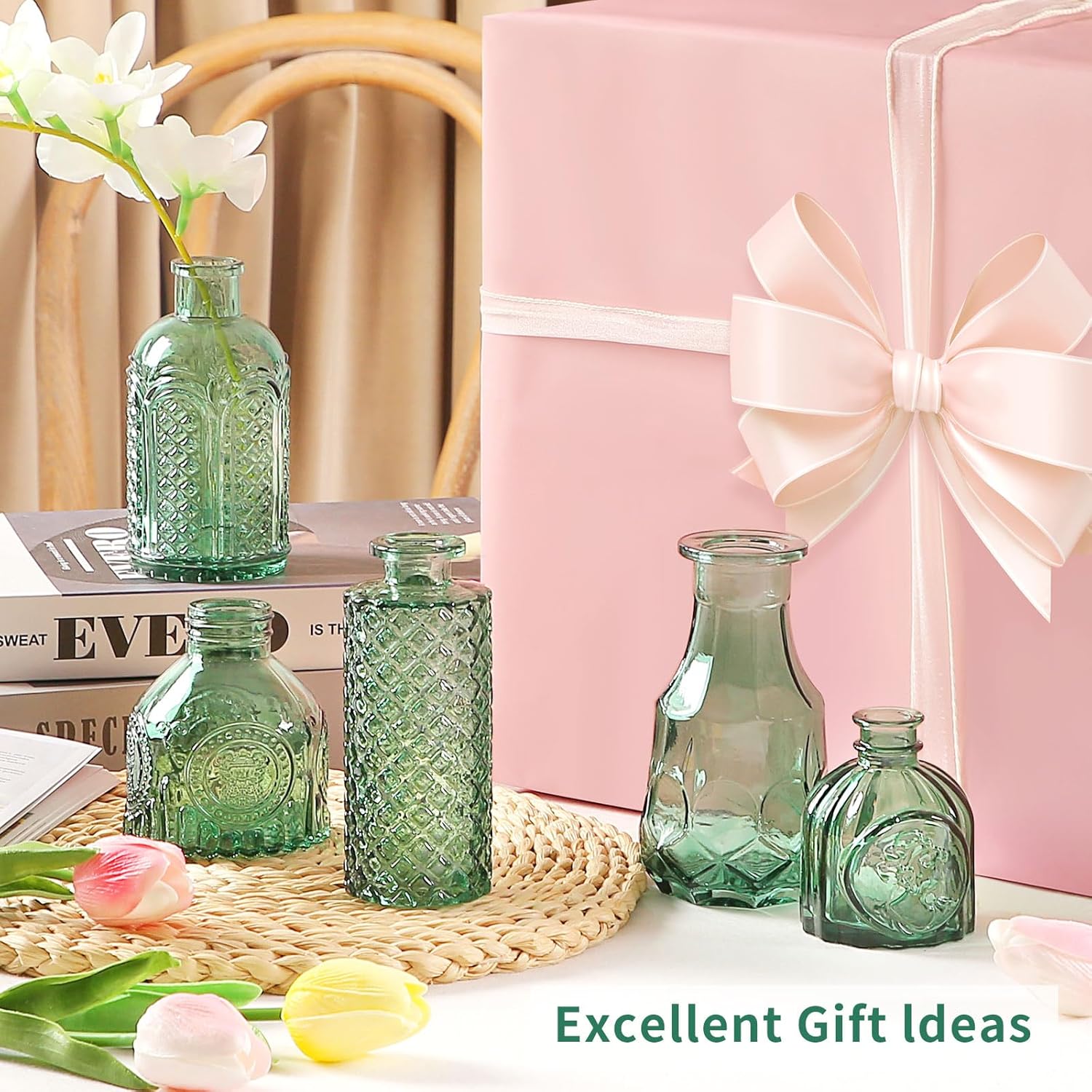 Glass Bud Vases in Bulk Set of 30 Pcs,Small Glass Vases for Flowers as Wedding Centerpieces for Tables,Clear Flower Vases Suitble for Wedding Decorations,Home Decor (Dark Green, 30 pcs)