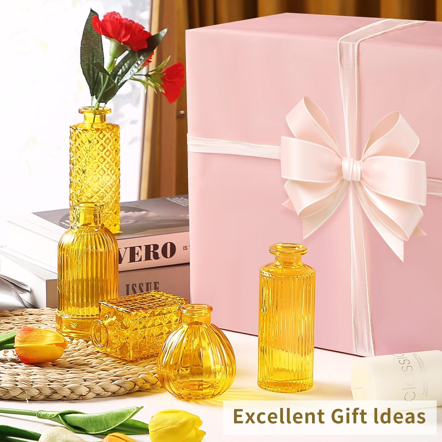 • Versatile Decor Accents: Ideal for kitchen, living room, office, dining area, or as captivating table centerpieces, these vases transcend their role as mere flower holders. Embrace their multifunctionality as stunning glass candle vases or reed diffusion vessels. Perfect gifts for various occasions like Christmas, Thanksgiving, weddings, housewarmings, and more, ensuring delight for your friends and loved ones.