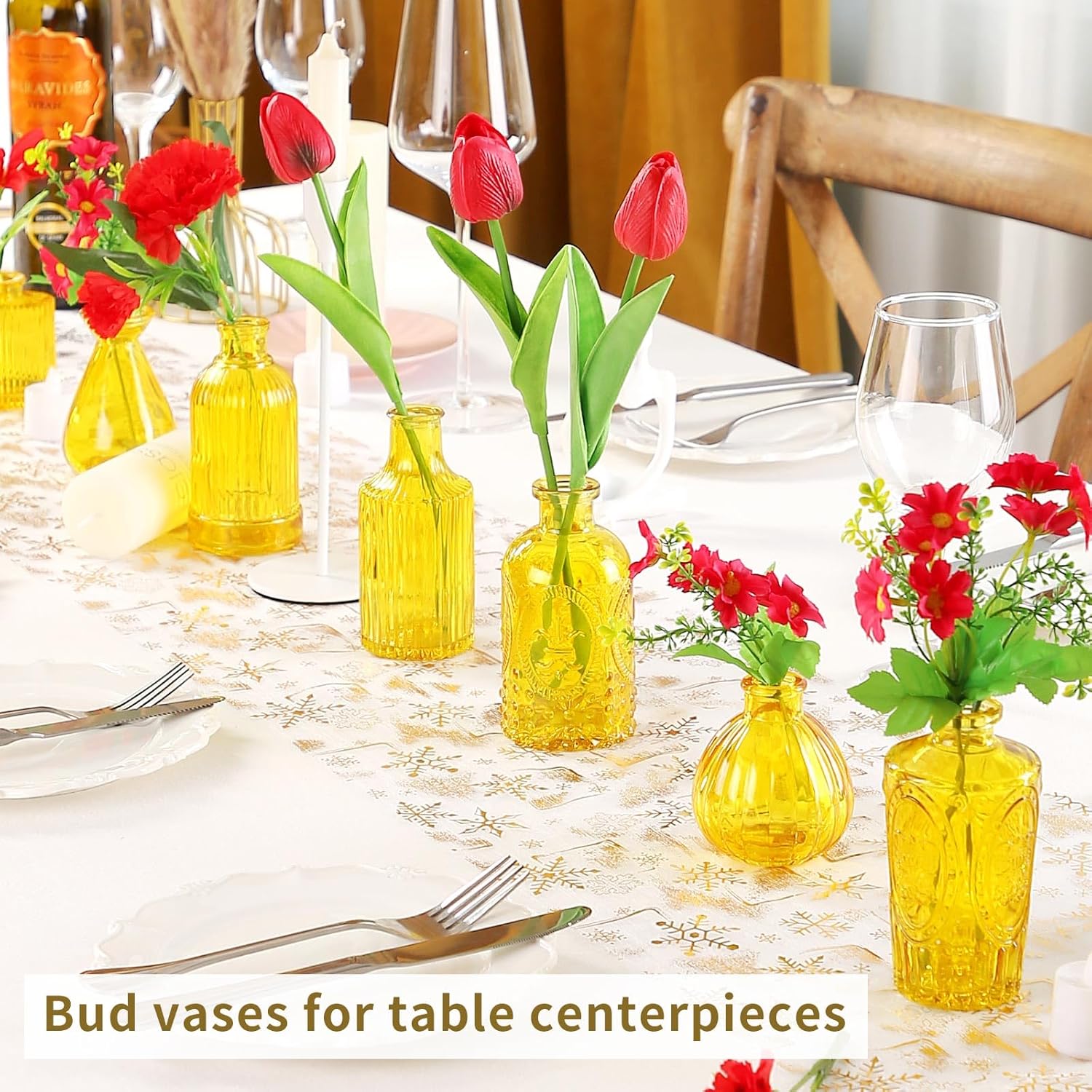 • Elegance Redefined: These mini glass vases in yellow serve as perfect vessels for real or artificial flowers. Each small yellow vase accommodates a single short stem or two petite flowers, presenting a sophisticated and graceful appearance even when displayed individually. Their delicate shapes and intricate patterns make for captivating décor accents, even without floral arrangements.