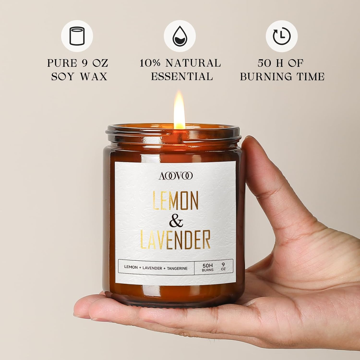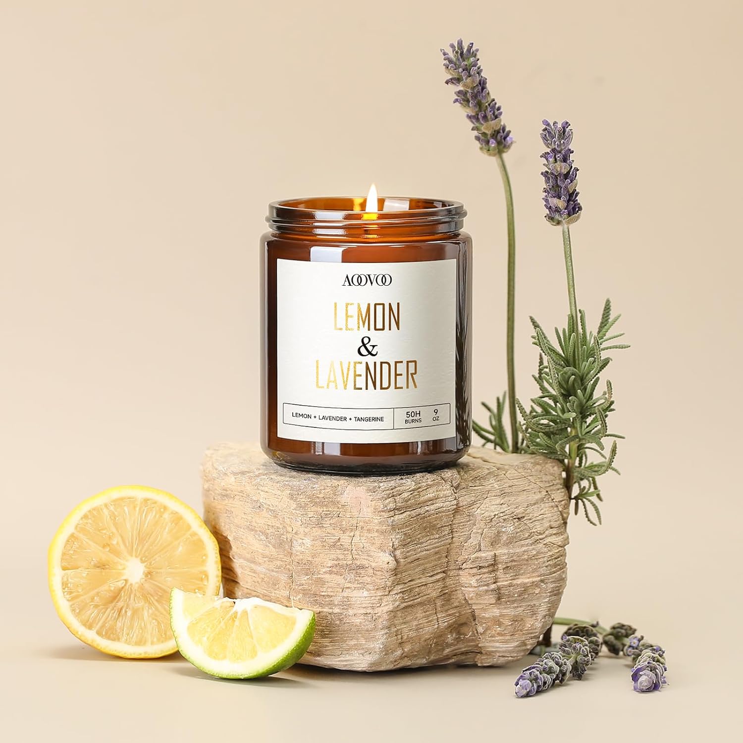 AOOVOO Lemon Lavender Scented Candle - Lavender, Soy Wax, Aromatherapy, 9oz