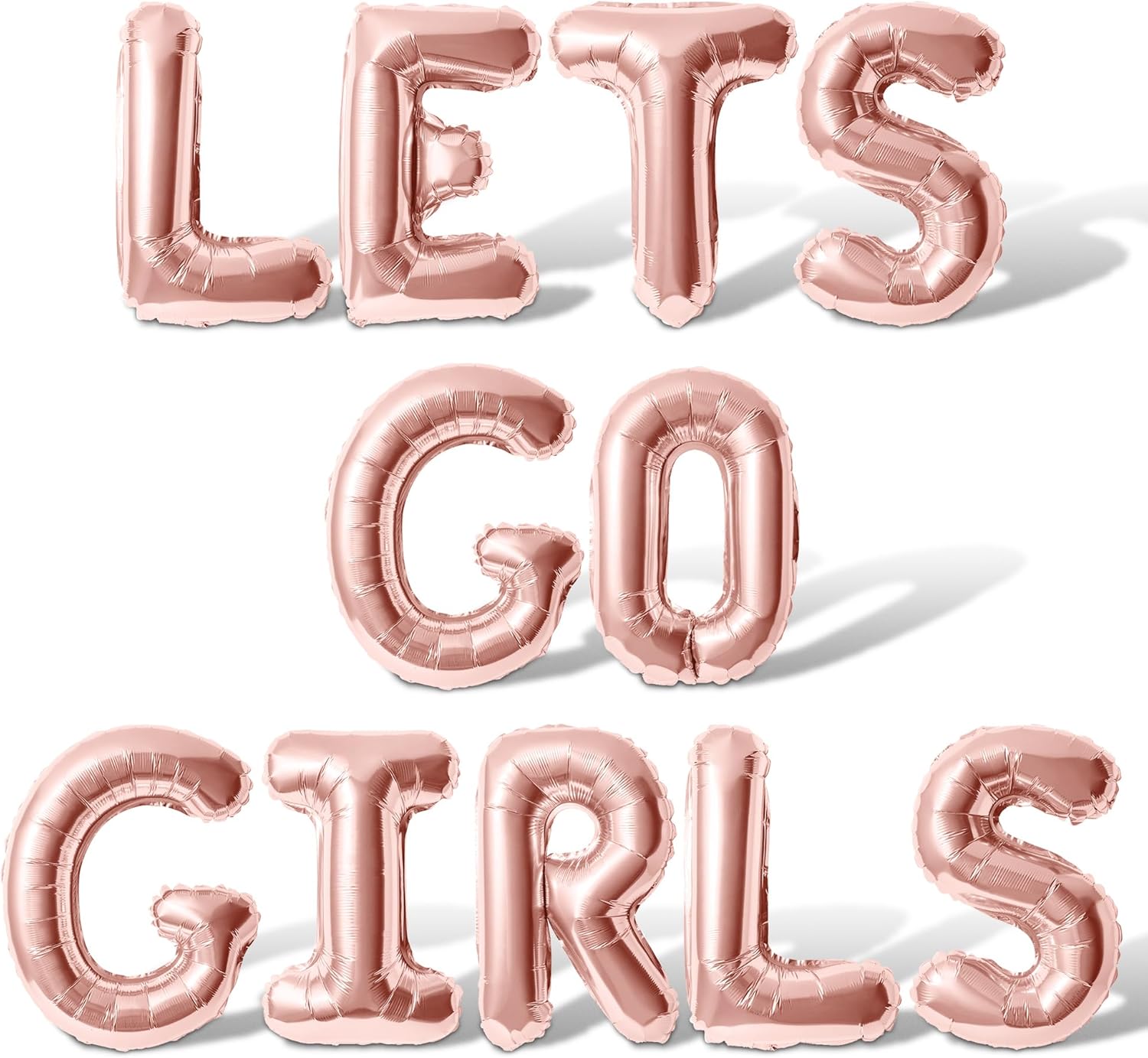 Letter Balloons - LETS GO GIRLS 16" Inch Alphabet Letters Foil Mylar Balloon Bachelorette or Hen Party Banner (Rose Gold)