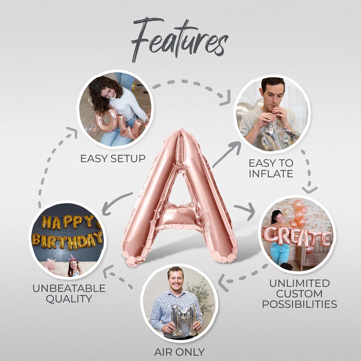• MULTIPLE COLORS TO CHOOSE FROM: Our 16 inch letter and number balloons are available in gold, rose gold, silver, black, blue, pink, red, white, green and purple colors.