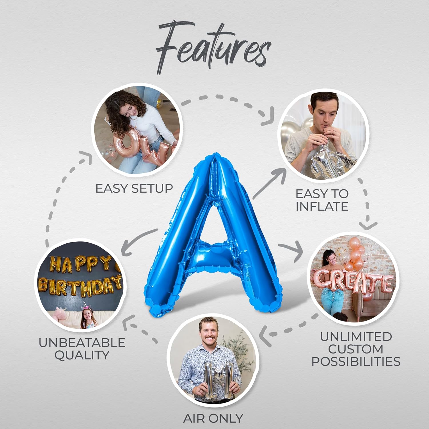 • EASY TO INFLATE & DISPLAY: Our letter balloons are designed to be filled with air and hung from a ribbon. All sets come with straws for inflating the balloon, ribbon and instructions. Please remember that these balloons will not float.