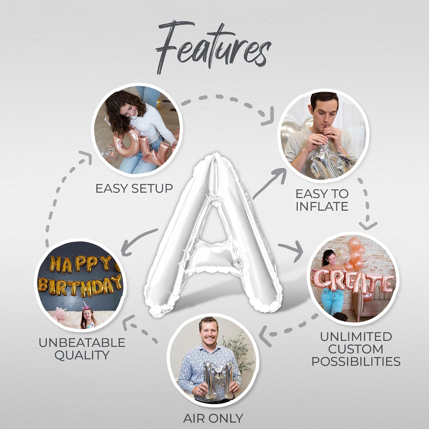 • EASY TO INFLATE & DISPLAY: Our letter balloons are designed to be filled with air and hung from a ribbon. All sets come with straws for inflating the balloon, ribbon and instructions. Please remember that these balloons will not float.