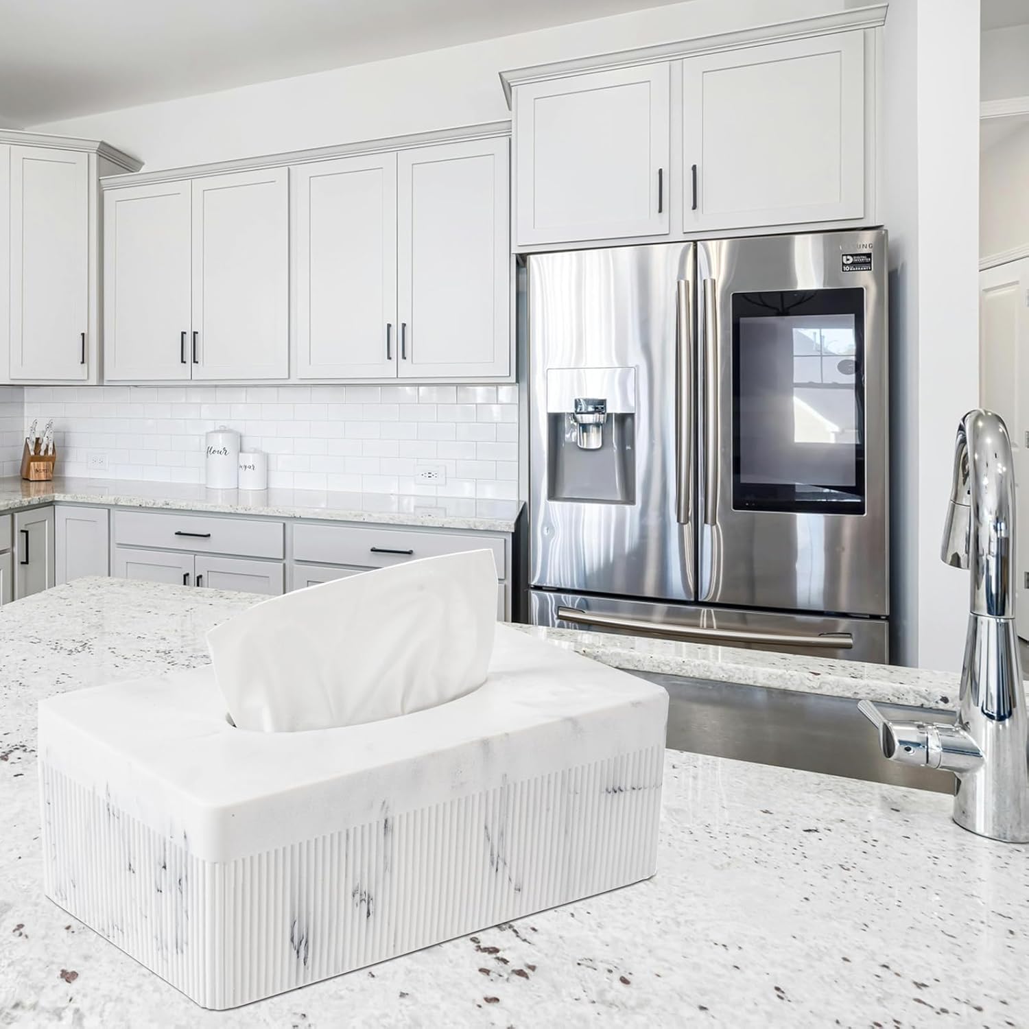 • 【Scenes 】The tissue box cover perfect for end tables, night stands, countertops, vanities and desks throughout your home; Use in kitchen, living room, family room, office, craft room, bedrooms and more; Perfect for house, apartment, condo, college dorm rooms, RVs and campers