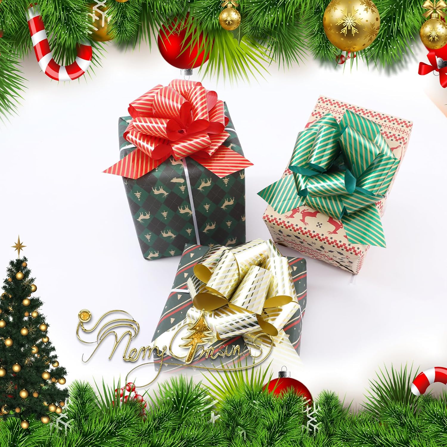 FORBINBO 12 Pieces Stripe Pull Bow Large Gift Wrapping Pull Bows with Ribbon for Christmas Presents Wedding Gift Wrapping Baskets