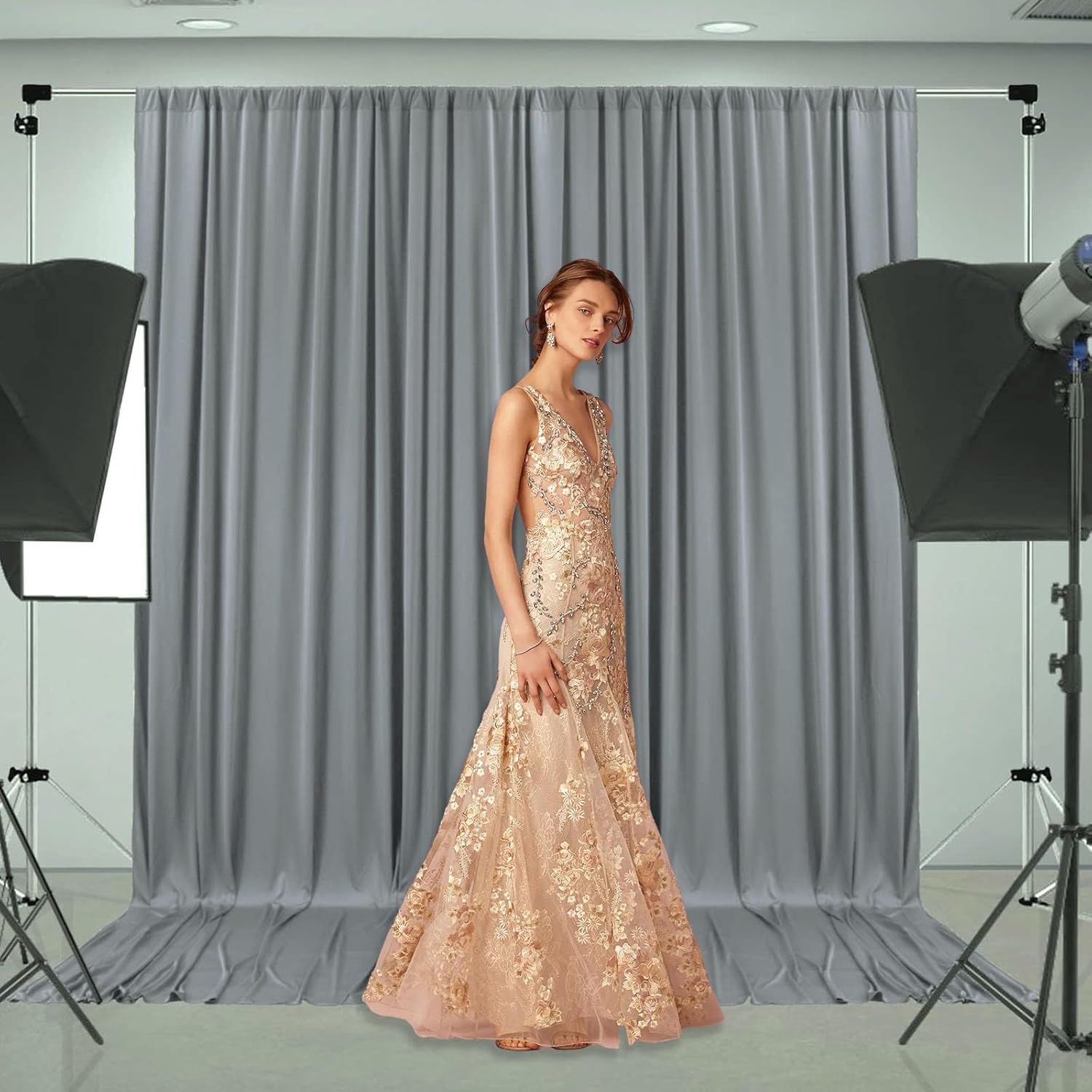 10 x 10 Feet Grey Backdrop Curtain for Partie, Background Curtains for Photoshoot, Birthday, Wedding, Halloween, Thanksgiving, Christmas Day, New Year Party Decorations 5Ft x 10Ft, 2 Panels