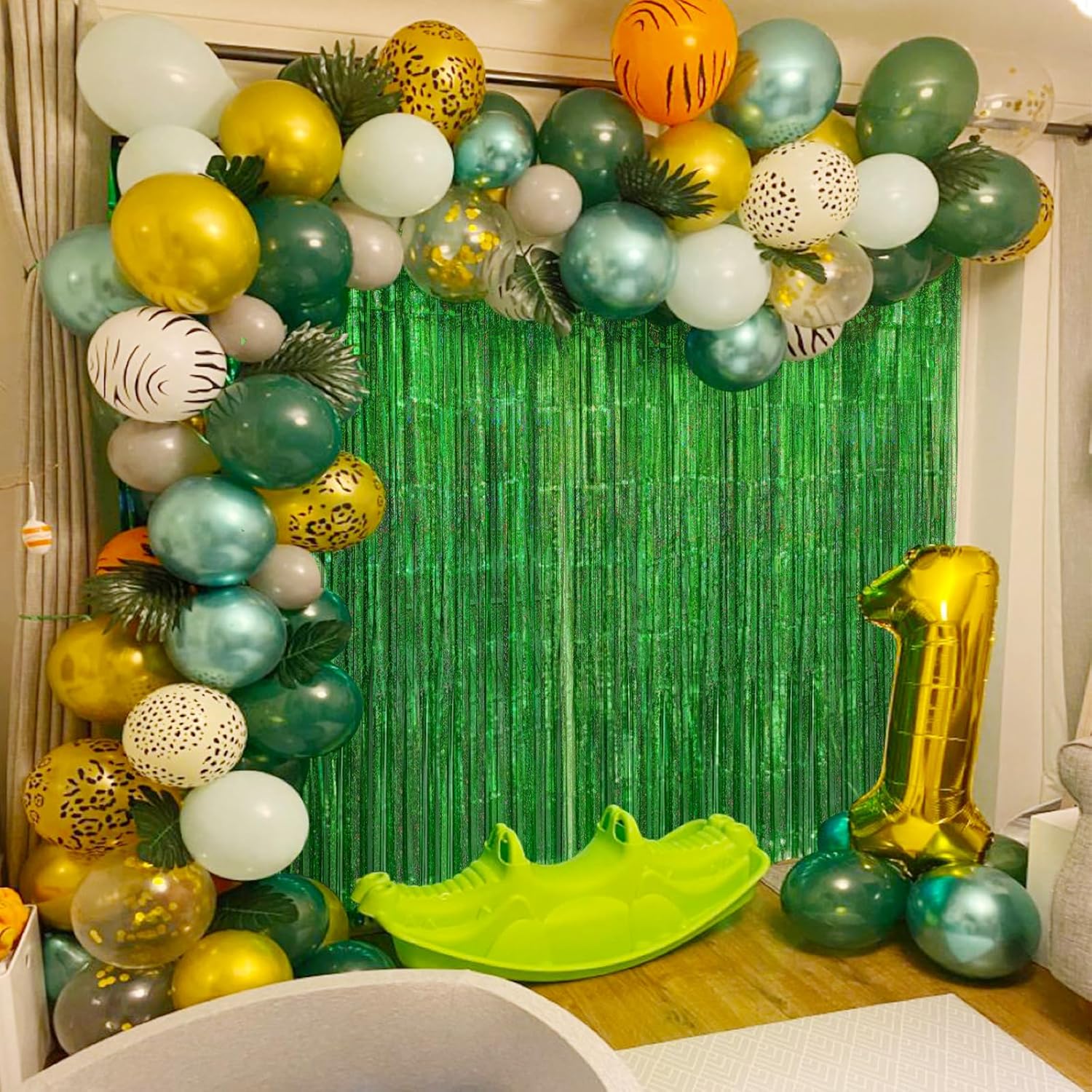 • πŸŽ‰SAFE & SHINY MATERIAL- This Glitter green tinsel backdrop is made of high-quality shiny tinsel, non-toxic, odorless, and non-fading, safe for families with children and pets. Just transform your home into a shining streamers happy birthday decorations, and enjoy the party.