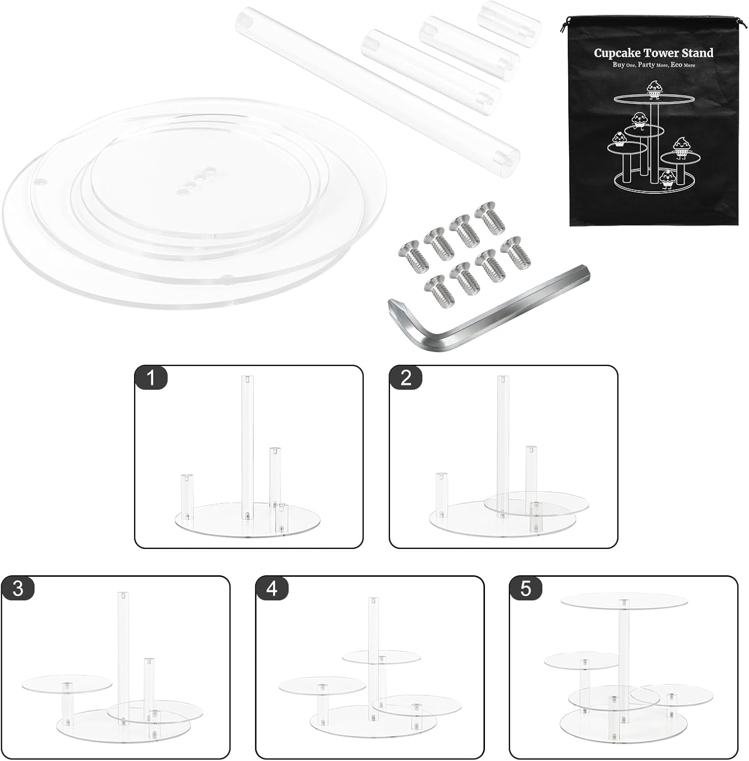 • ๐ŸŽ„[Premium Cupcake Stand] This tiered cake and cupcake combo stand is made of 4mm thick premium acrylic which has a solid construction and unique design. The edges of the acrylic are perfectly clear and well polished, safe to use.