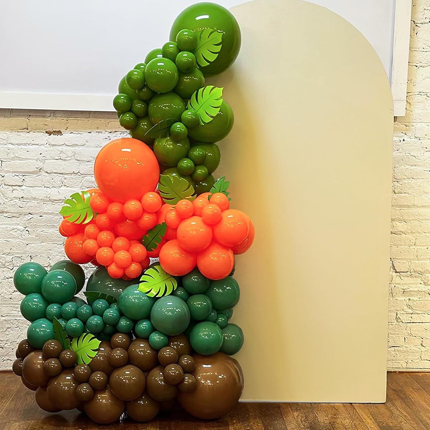 • Green Orange Balloons: 35Pcs 12 inch balloons and 1 white ribbon set. Includes 10pcs orange balloons, 10pcs brown balloons, 8pcs pea green balloons and 7pcs olive green balloons.