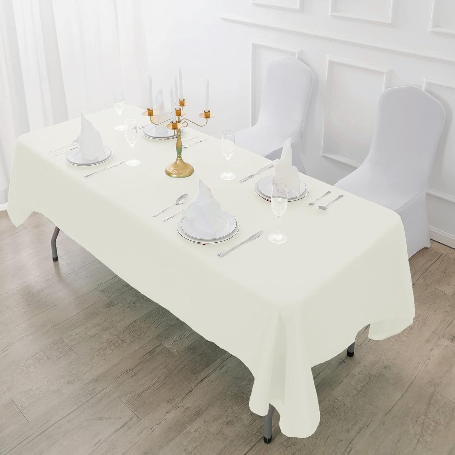 Fokitut 6 Pack Rectangle Tablecloth, 90x132 Inch, Stain Resistant and Wrinkle Polyester Table Cloth, Fabric Table Cover for Kitchen Dining, Wedding, Party, Holiday Dinner-Ivory