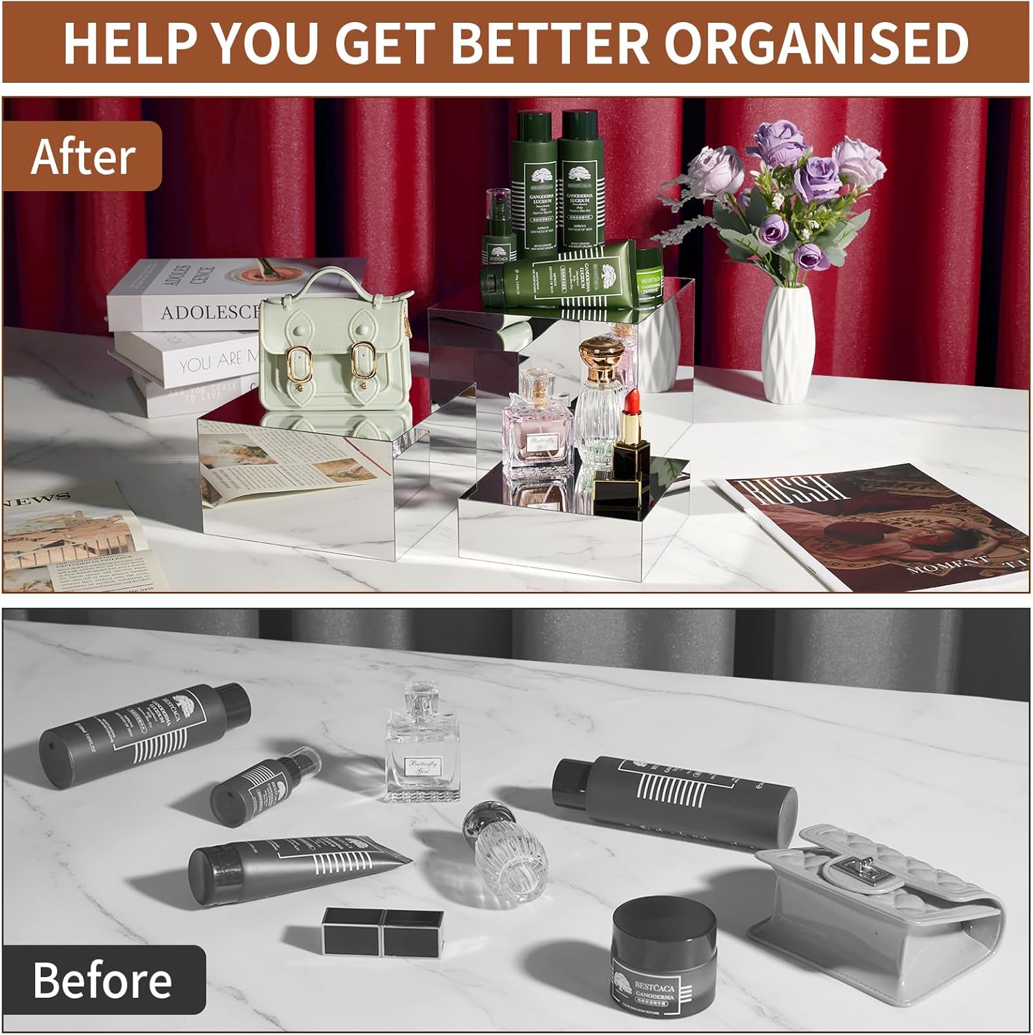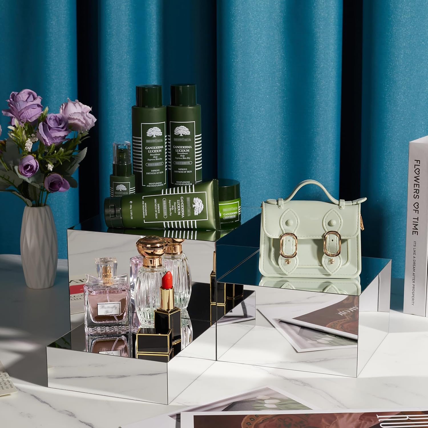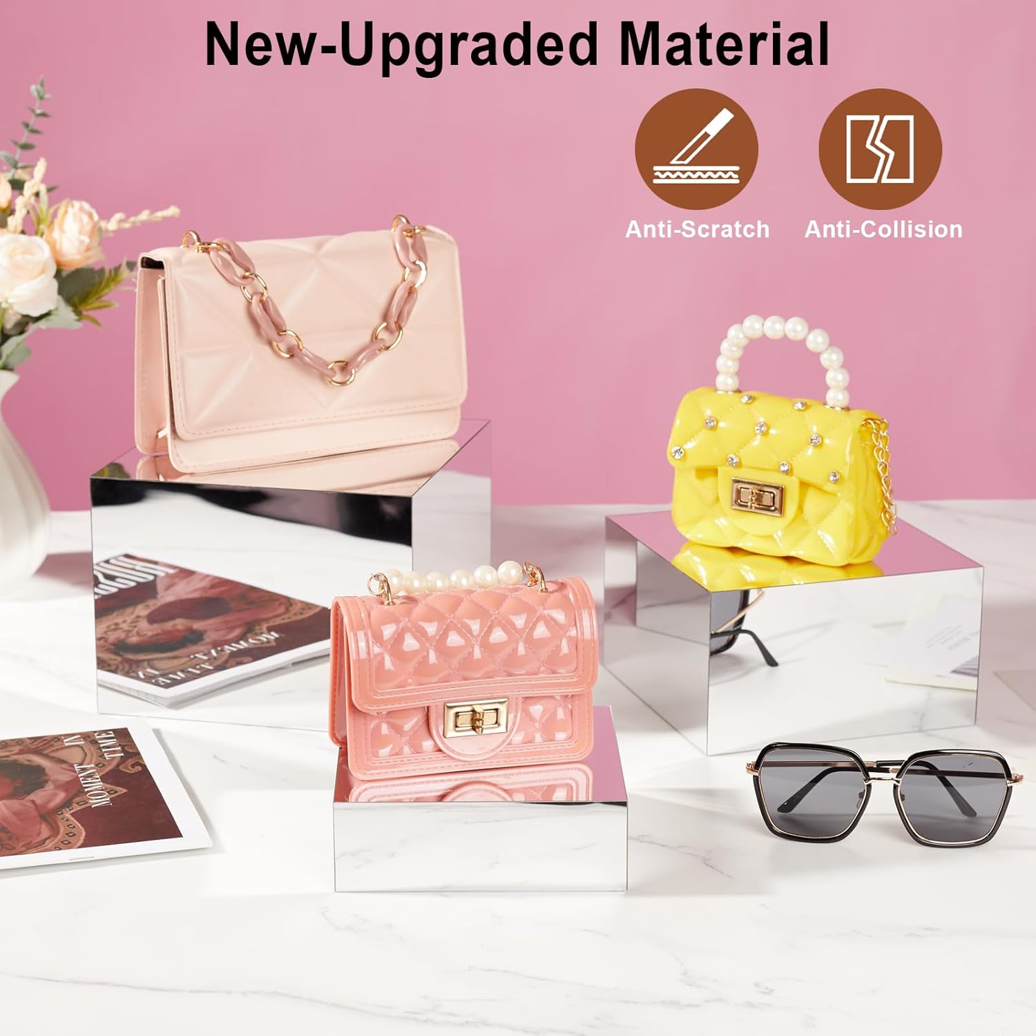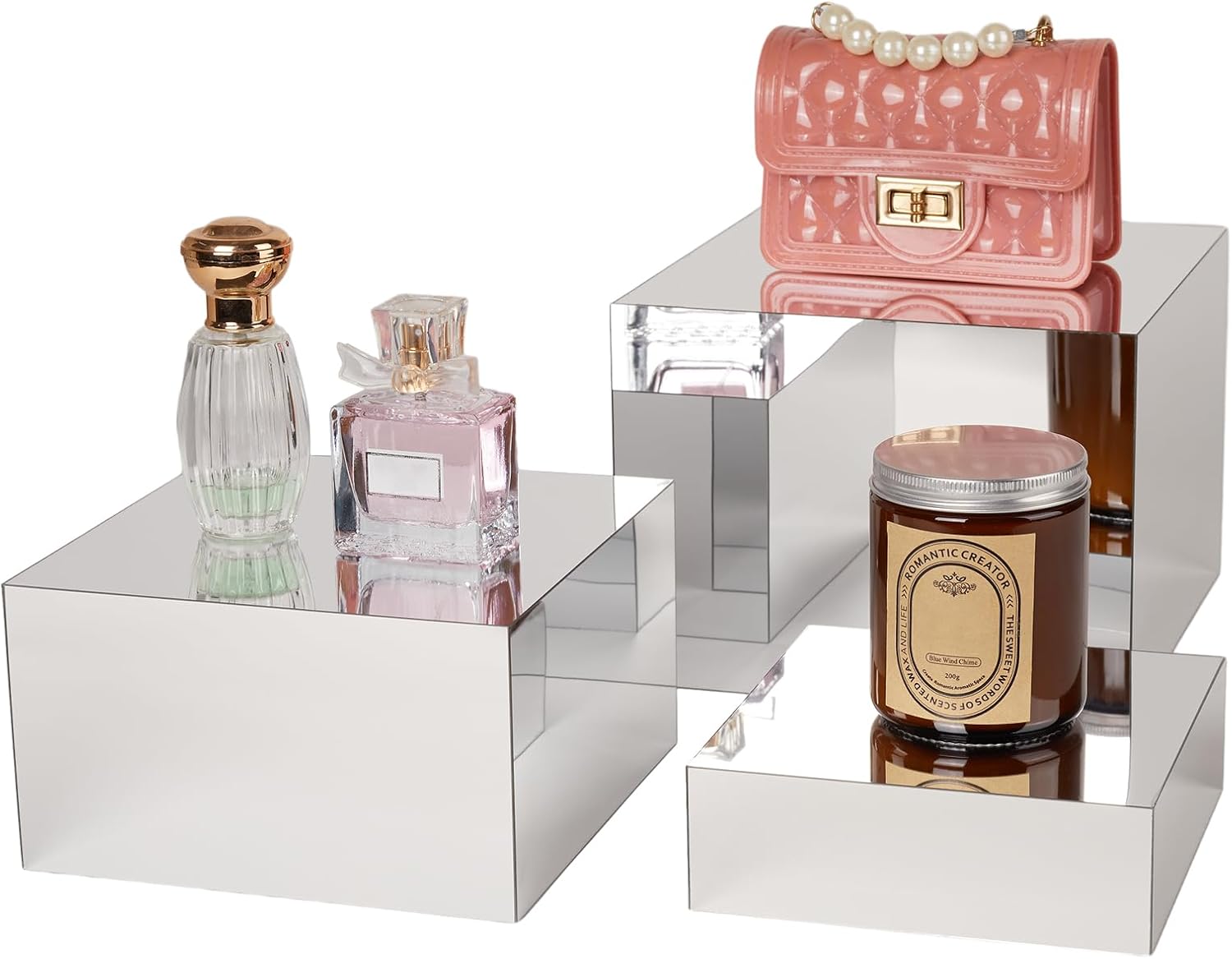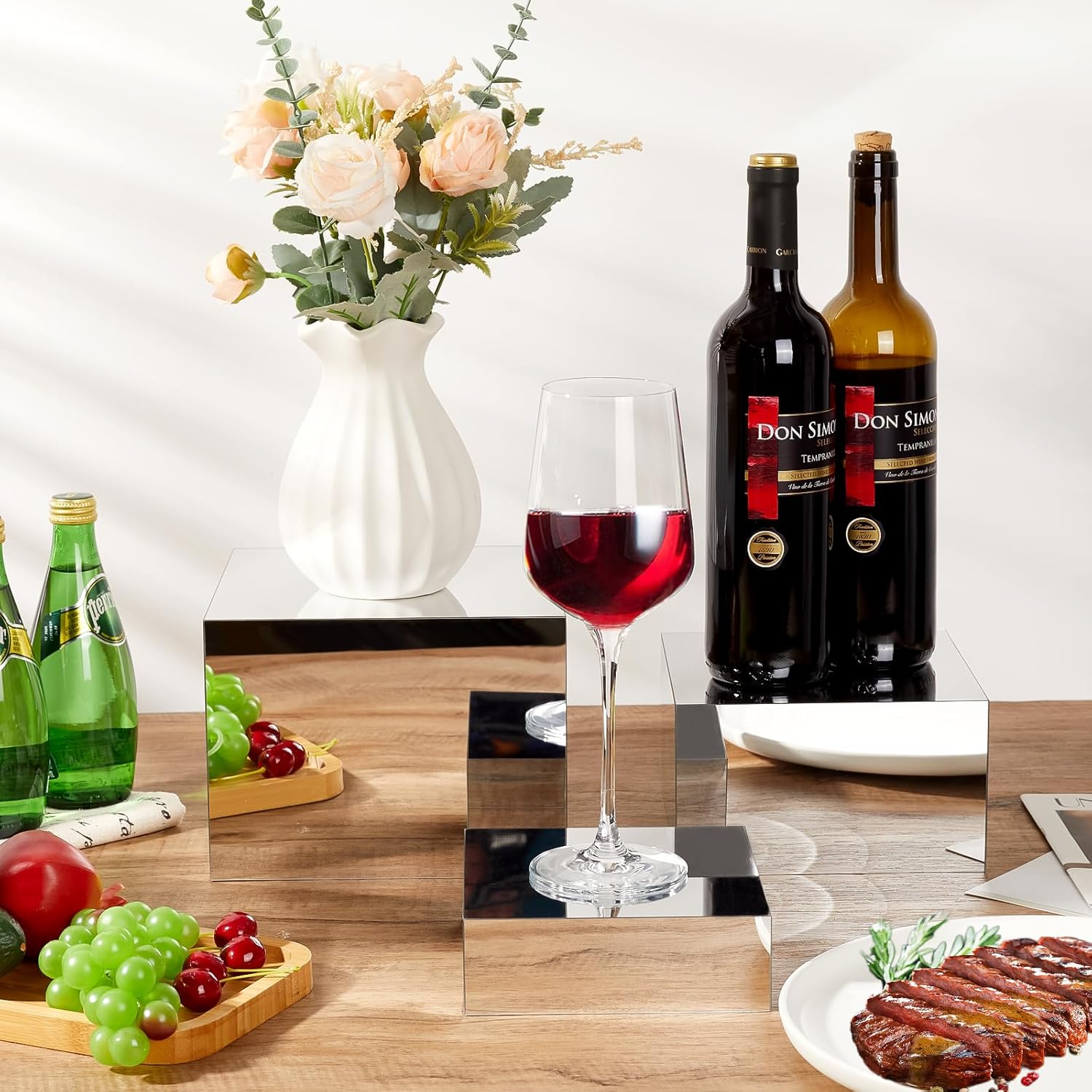 3 Pcs Acrylic Risers for Display, Acrylic Cube Box Food Display Risers Stand Shelf for Catering Dessert Collectibles Jewelry Figures Party (Silver3pc)