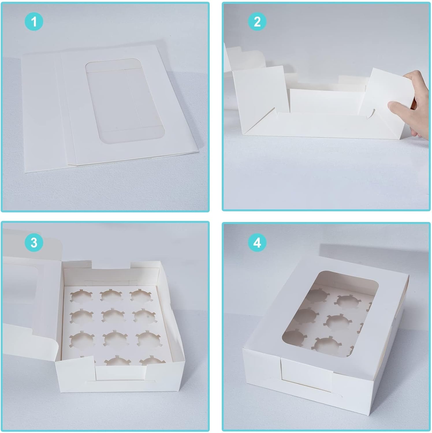 • VALUE PACK:You will get 5 cupcake boxes and 5 cupcake stand inserts.The assembled box measures 13.4x9.8x4 inches and each cupcake stand can hold 12 cupcakes,which will meet your packaging needs for a variety of desserts.If you're just a baking enthusiast,make your pastries look more professional with our cupcake boxes.