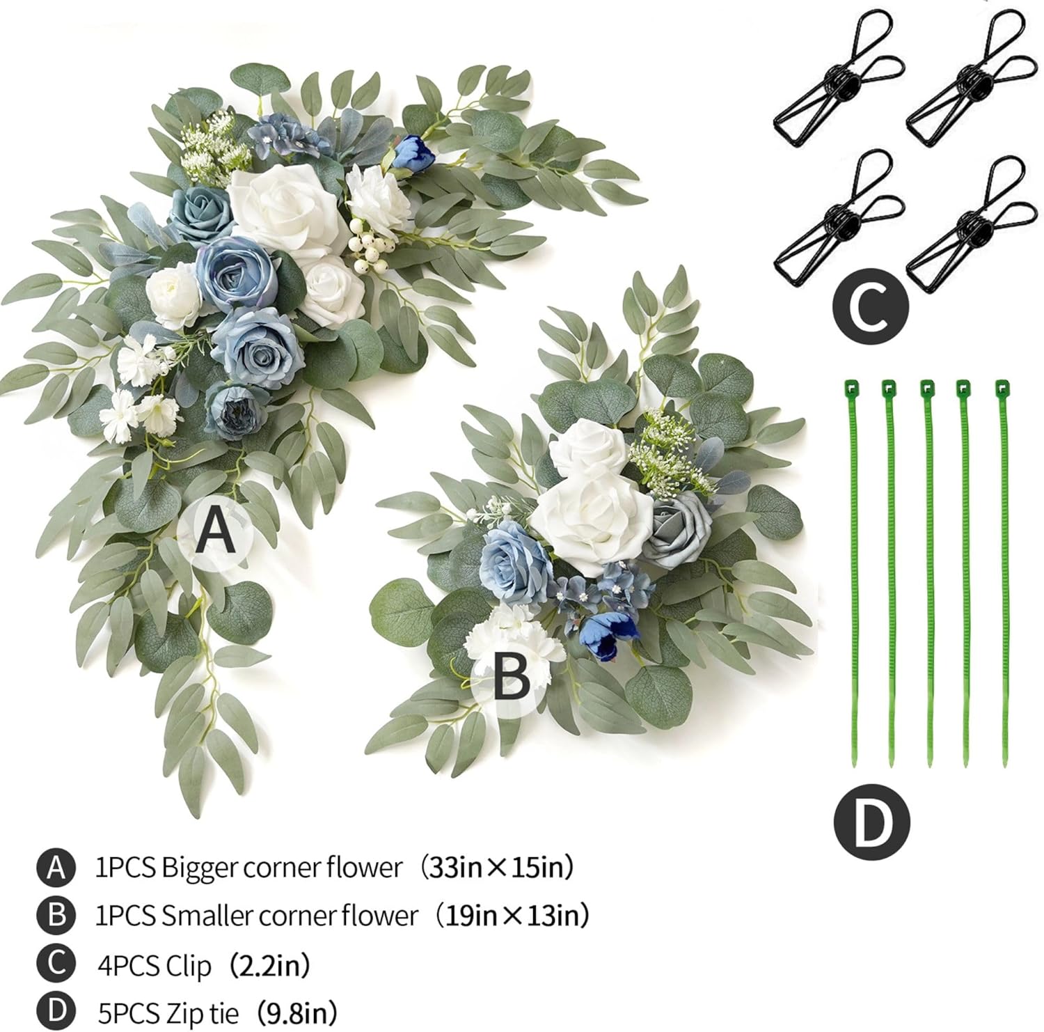 Wedding Sign Faux Flower Swag (Pack of 2) for Ceremony Party Reception Entrance Floral Decor Wall Easel Stand for Wedding Poster Welcome Sign(Blue)