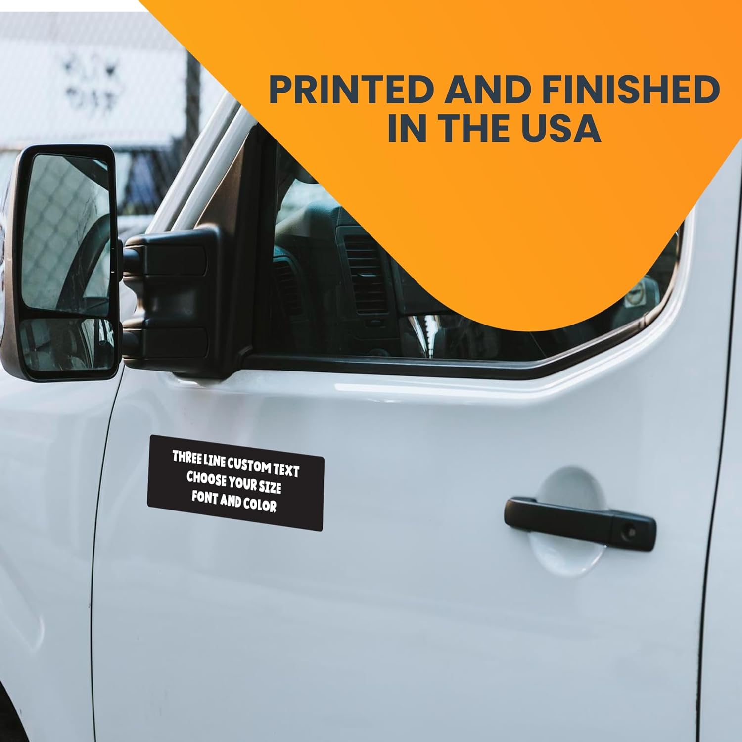 • Customize your vehicle or home with this good-quality personalized magnet made from our most durable magnetic vinyl. Ideal for trucks, lockers, mailboxes, refrigerators, and more, this versatile magnet is built to last. It is waterproof and heat-resistant, making it ideal for outdoor use. Printed with UV-resistant inks, it remains fade-resistant. Our magnets are non-reflective, ensuring they blend seamlessly with any surface. 𝐍𝐨𝐭𝐞: 𝐄𝐧𝐬𝐮𝐫𝐞 𝐲𝐨𝐮𝐫 𝐬𝐮𝐫𝐟𝐚𝐜𝐞 𝐢𝐬 𝐦𝐚𝐝𝐞 𝐨𝐟 𝐬𝐭𝐞𝐞𝐥. 𝐓𝐡𝐢𝐬 𝐦𝐚𝐠𝐧𝐞𝐭 𝐰𝐢𝐥𝐥 𝐧𝐨𝐭 𝐚𝐝𝐡𝐞𝐫𝐞 𝐭𝐨 𝐟𝐢𝐛𝐞𝐫𝐠𝐥𝐚𝐬𝐬, 𝐩𝐥𝐚𝐬𝐭𝐢𝐜, 𝐚𝐥𝐮𝐦𝐢𝐧𝐮𝐦, 𝐨𝐫 𝐚𝐧𝐲 𝐨𝐭𝐡𝐞𝐫 𝐧𝐨𝐧-𝐦𝐞𝐭𝐚𝐥 𝐬𝐮𝐫𝐟𝐚𝐜𝐞𝐬.