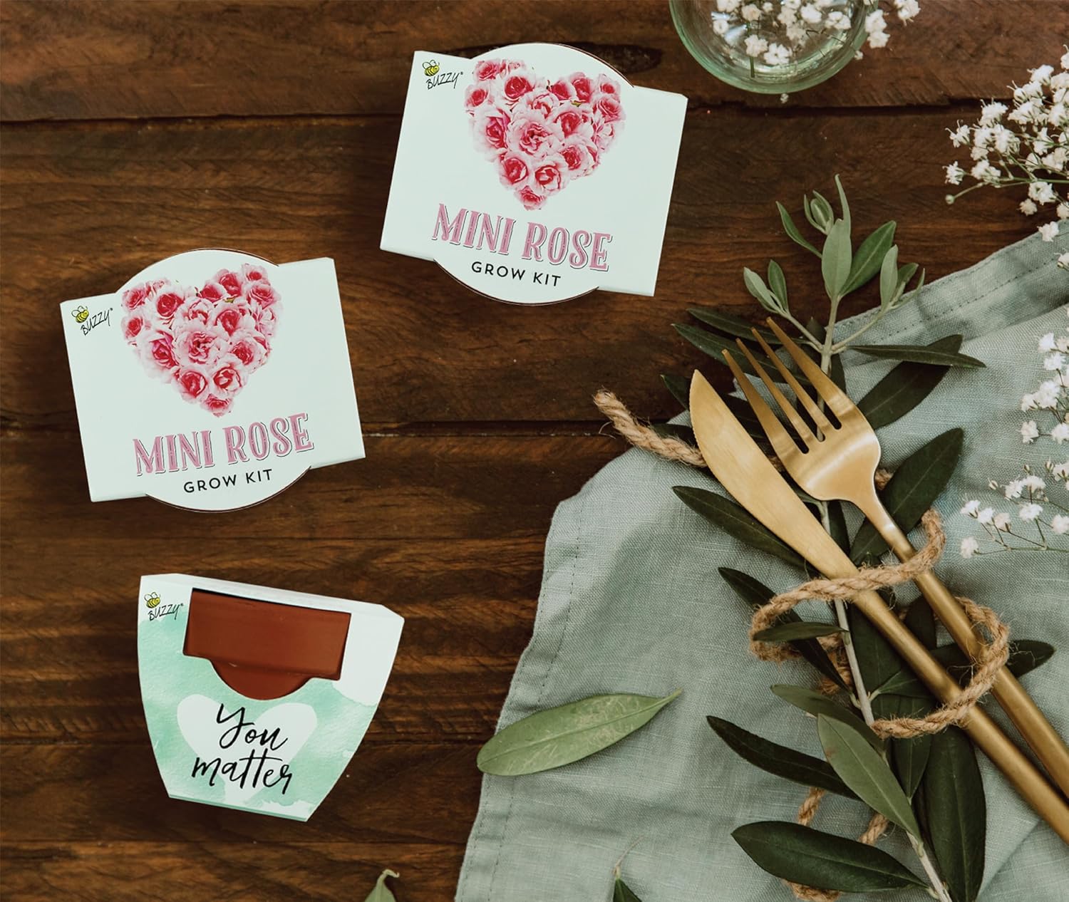 • Tiny Pots, Big Love: Each kit includes 12 mini 2"/5cm terracotta pots, all-natural Mini Rose seed packets, coconut husk growing medium, and simple step-by-step instructions. Everything you need to grow your own little garden of love.