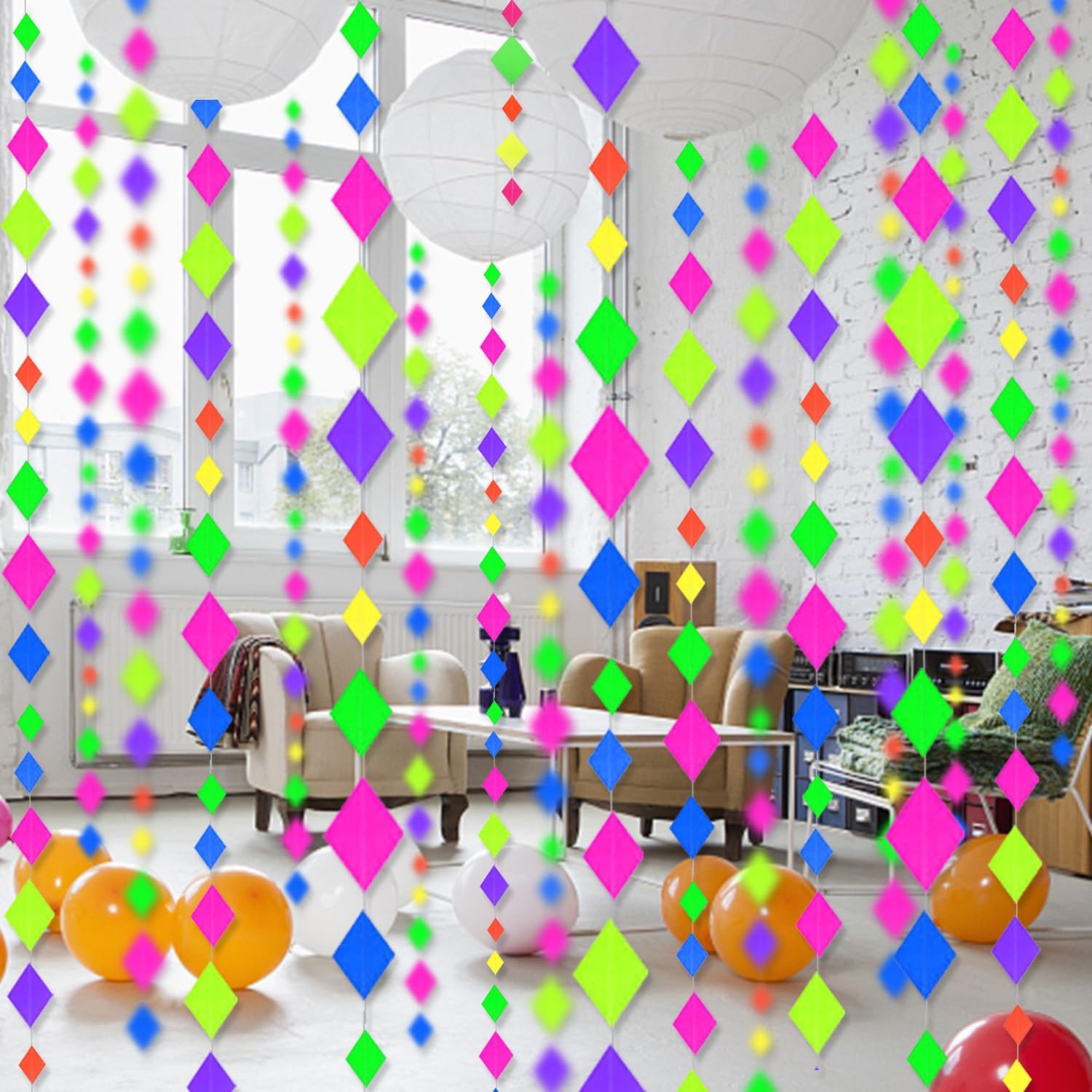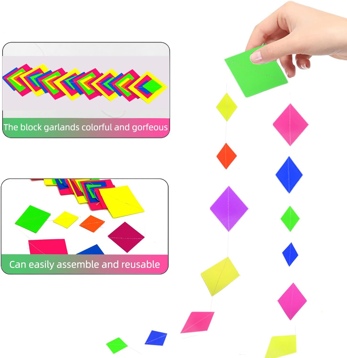 • 【What you can GET 】 Package Include: 123 Ft /6 Pcs 7 Colorful Diamond shape neon streamers garlands