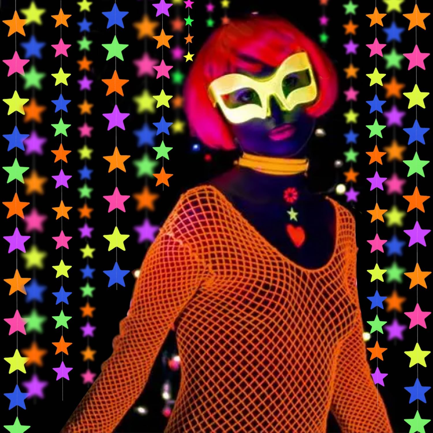 120feet UV Star Paper Neon Garland Neon Streamers Black Light Neon Decorations for Dark Glow Party UV Reactive Neon Party Favors Glow in The Dark Party Supplies for Party Wedding Birthday Banners