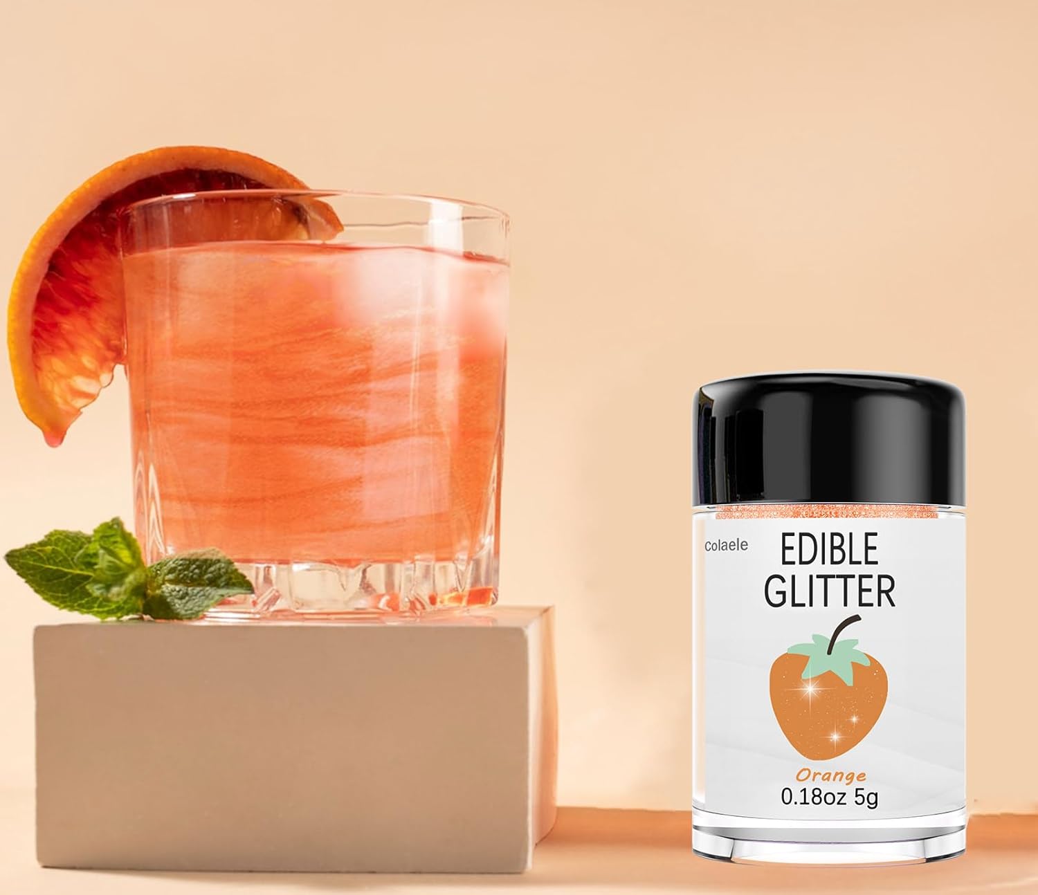 Orange Edible Glitter Glimmer Powder for Cakes Drinks - Colaele 5 grams Food Grade Luster Dust Metallic Food Decorating Sprinkle Disco Brew Dust for Cake Decorations Wine Beverage Candy Dessert, Vegan