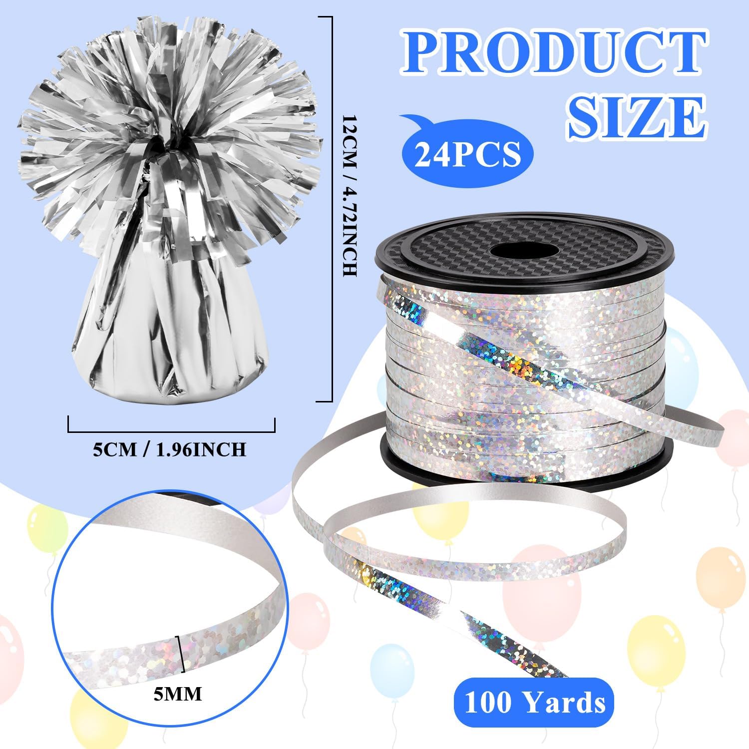 • What You Will Get: The package inludes 24 pcs silver Balloon Weights Metallic Anchor and 1 roll silver Iridescent Crimped Ribbon. These will ensure your decorations stay put throughout the festivities