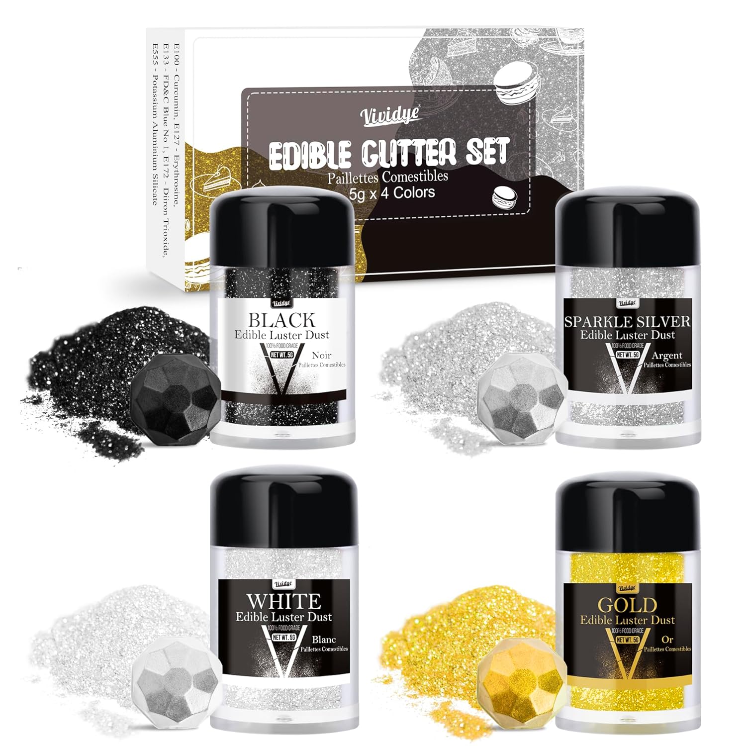 Edible Glitter - 4 Colors 5g / Bottles Luster Dust Edible Glimmer Powder for Sparkling Drinks, Foods, Wine, Cake, Beverage - Food Grade Shimmer Dust Powder for Cocktails, Baking, Halloween Decoration