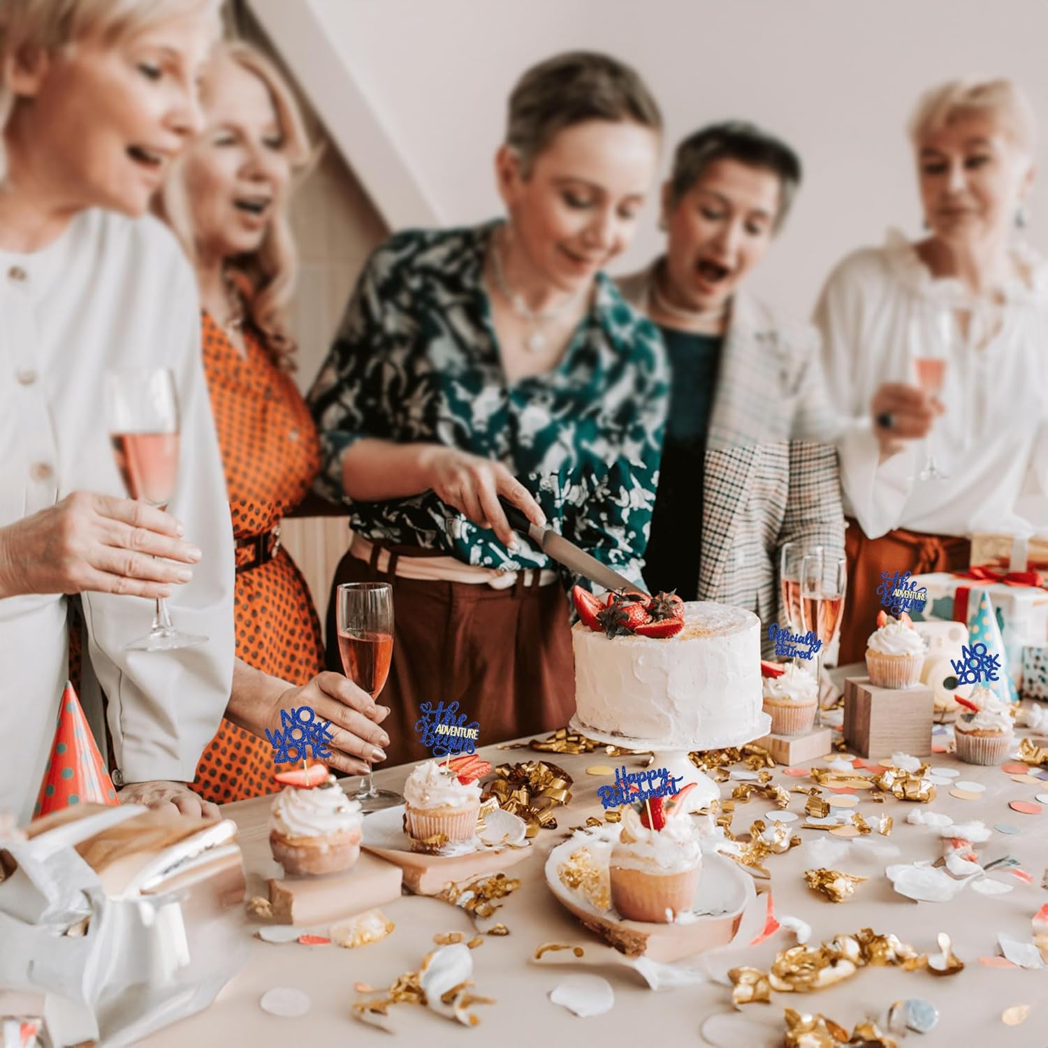 24Pcs Happy Retirement Cupcake Toppers Officially Retired Cake Toppers No Work Zone Adventure Begins Cupcake Picks Retirement Theme Farewell Birthday Party Decorations Supplies Dark Blue