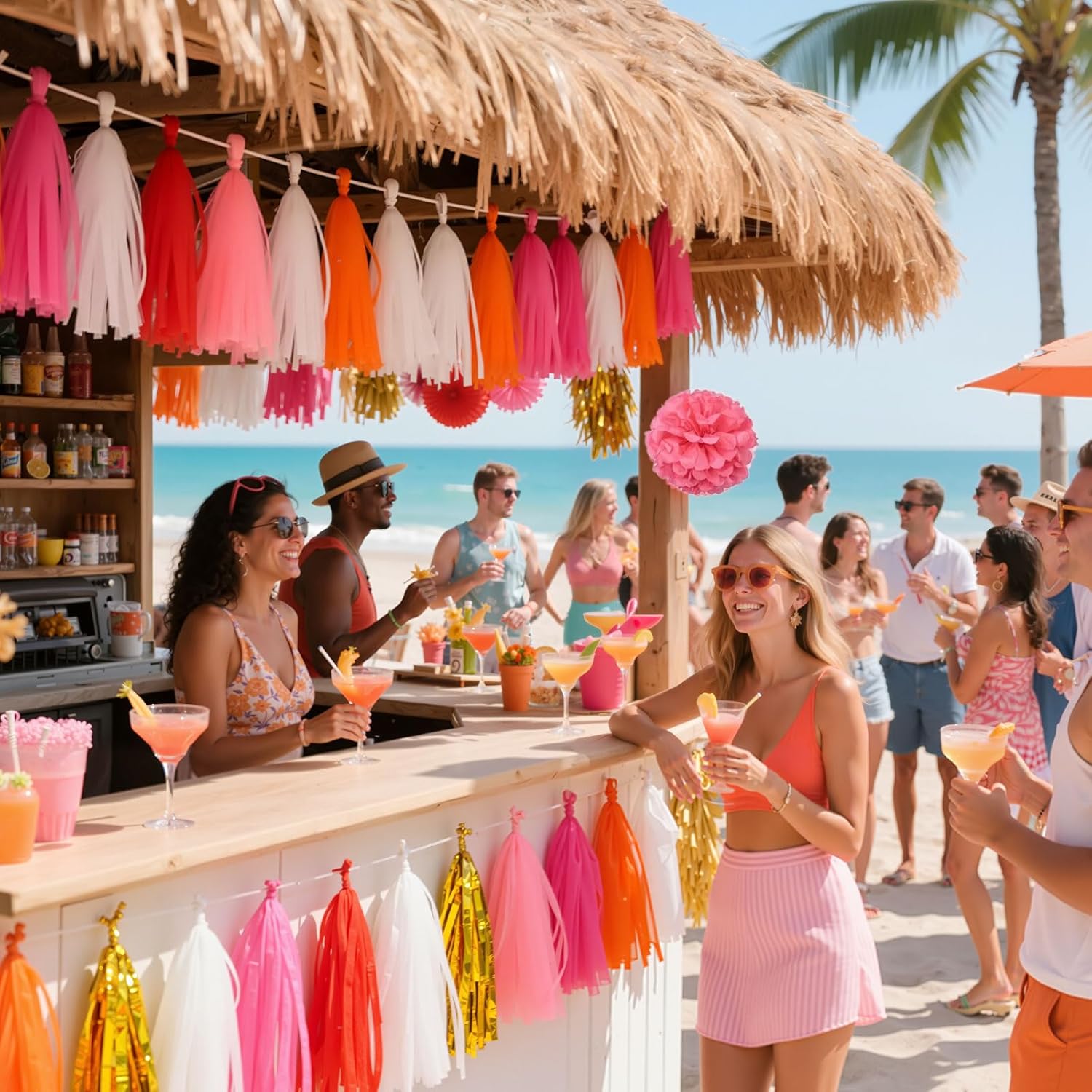 Shiny Tassel Garland Tissue Paper Tassel Banner,Tassels Decorations for Summer Luau Flamingo Girl,Wedding,Pumpkin Birthday Party,Bridal/Baby Shower,Pack of 20 (Hot Pink/Orange/Gold/White)
