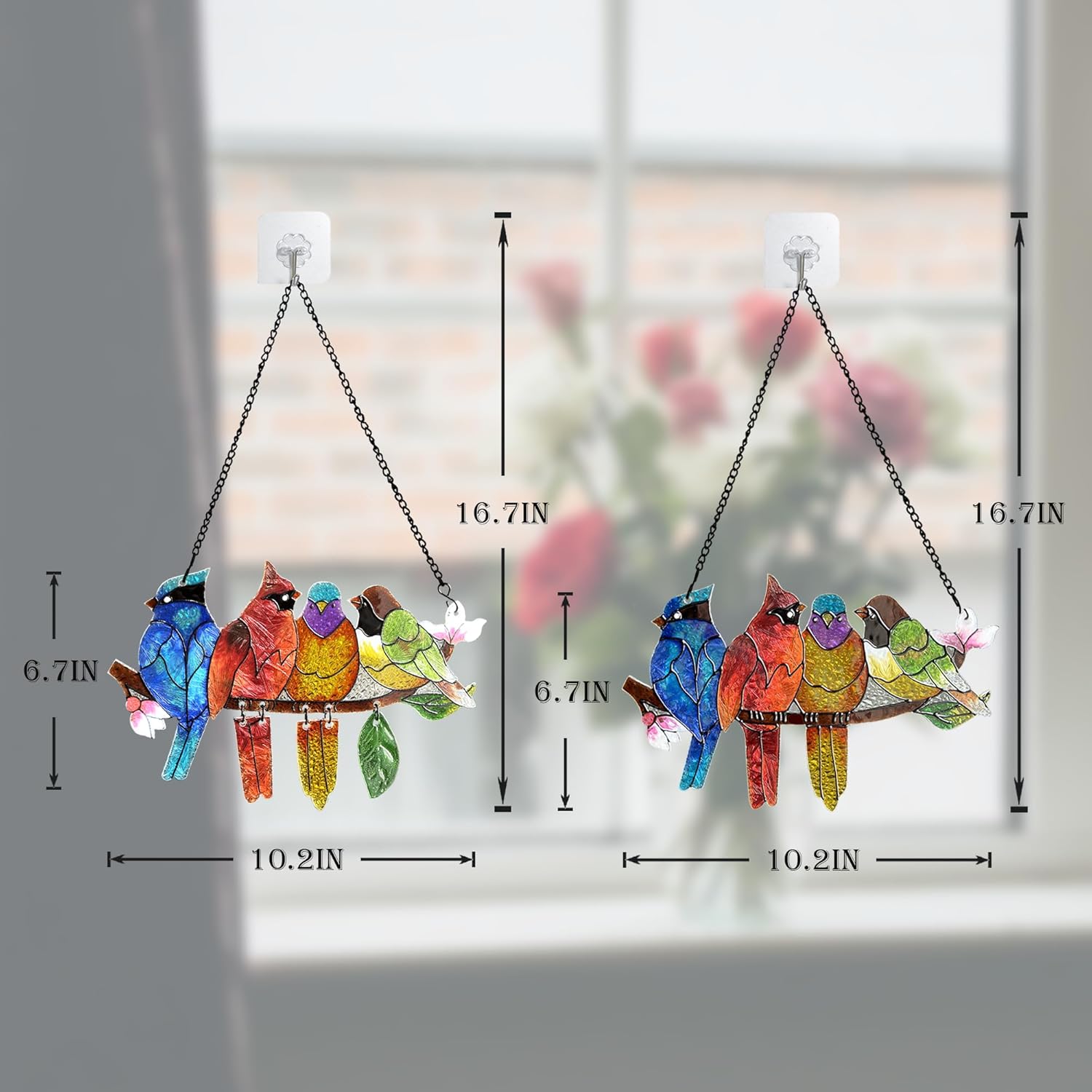 • Cardinal Window Hanging:Our glass panels 2 piece set is 10.2'' x 6.5'' with metal chain the total height is 16.7 inches.To hang in the window of the Living room, Sunroom, Kitchen, and dining room, suncatcher shining brightly in the sun.
