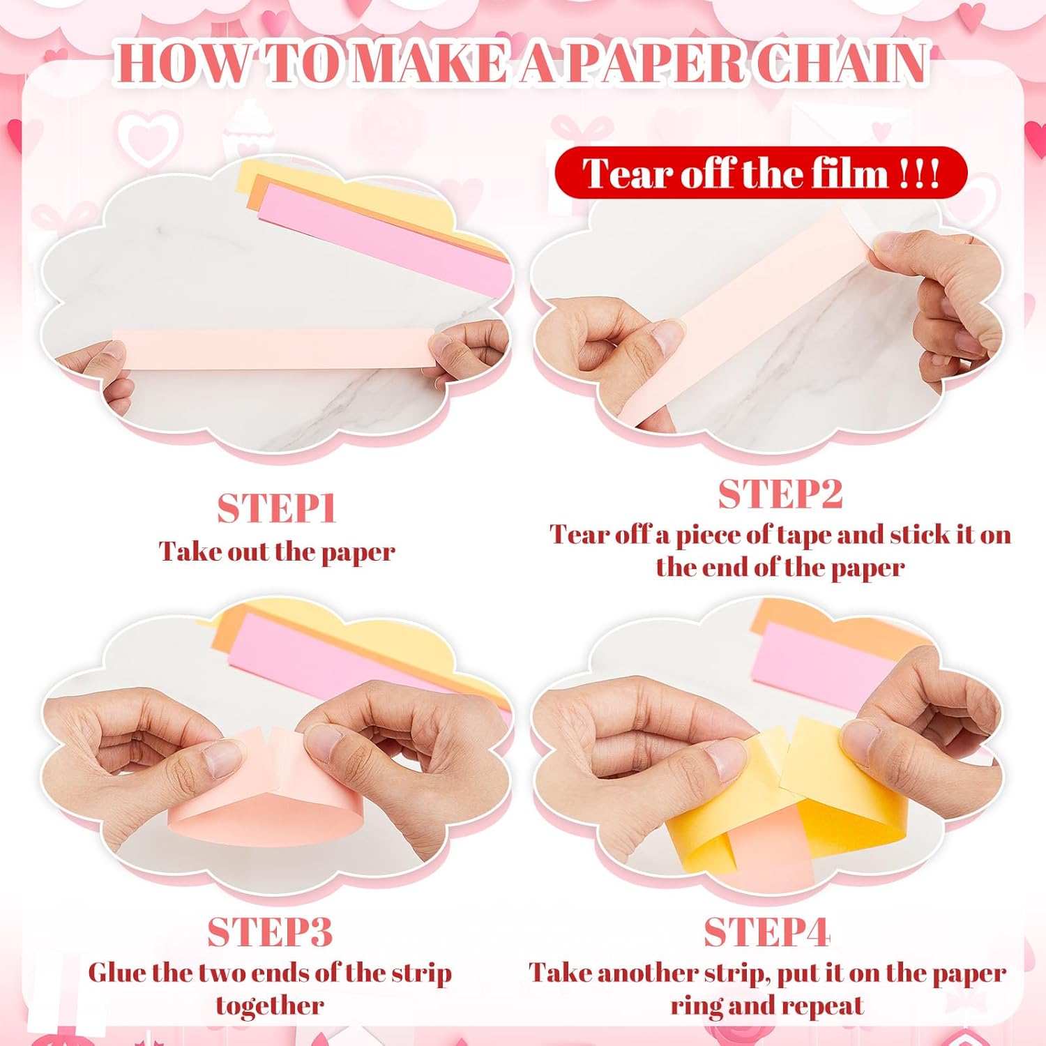 Lincia 600 Sheet Halloween Paper Chain Garland, Construction DIY Crafts Chain Strip for Fall Thanksgiving Party Decor, 1x8 Inch with Double Sided Tape (Valentine)