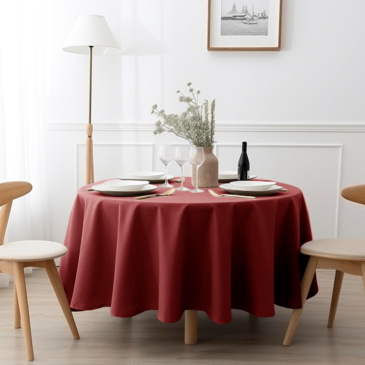EVERLY 100% Pure Linen Round Tablecloths 108Inch Round Machine Washable Tablecloth for Thanksgiving,Decorative Halloween,Buffet Parties,Picnic,Events,Weddings and Restaurants-Christmas Red