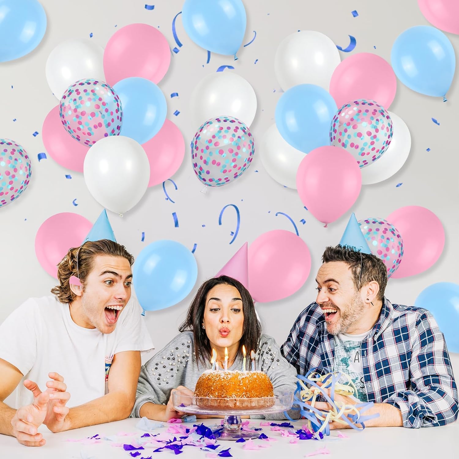 Pink and Blue Balloons Set, 12 Inch Pastel Pale Blue Pink Confetti Latex Balloons, Light Blue Pink White Balloon Kit for Boy or Girl Gender Reveal Party Birthday Baby Bridal Shower Decorations