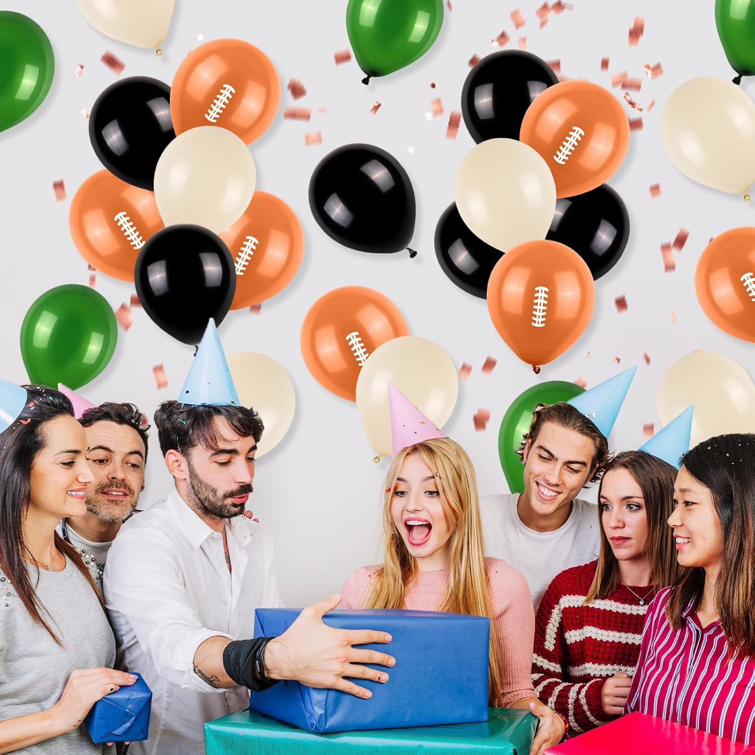 • 12 Inch football balloons: Package content includes 9 pcs football balloons, 7 pcs dark green balloons, 7 pcs beige balloons,7 pcs black balloons, a balloon ribbon.The color combination meets all your party imagination.