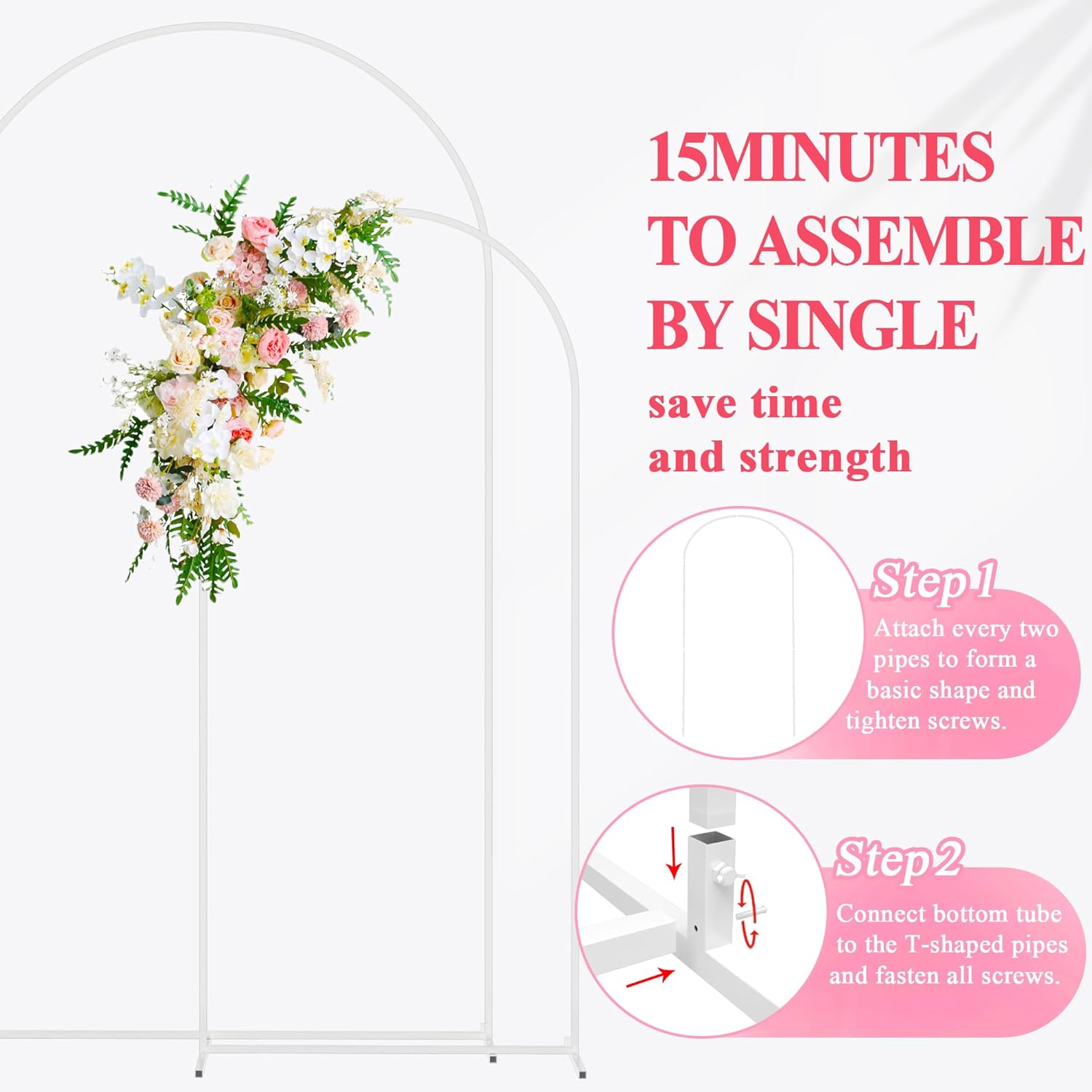 • 【2-Piece Metal Arch Stand Set】2-Pieces wedding arch backdrop stand set perfectly matched with two sizes for meeting your different needs. Flowers and tulles not included. Please feel free to contact us if you have any issues.