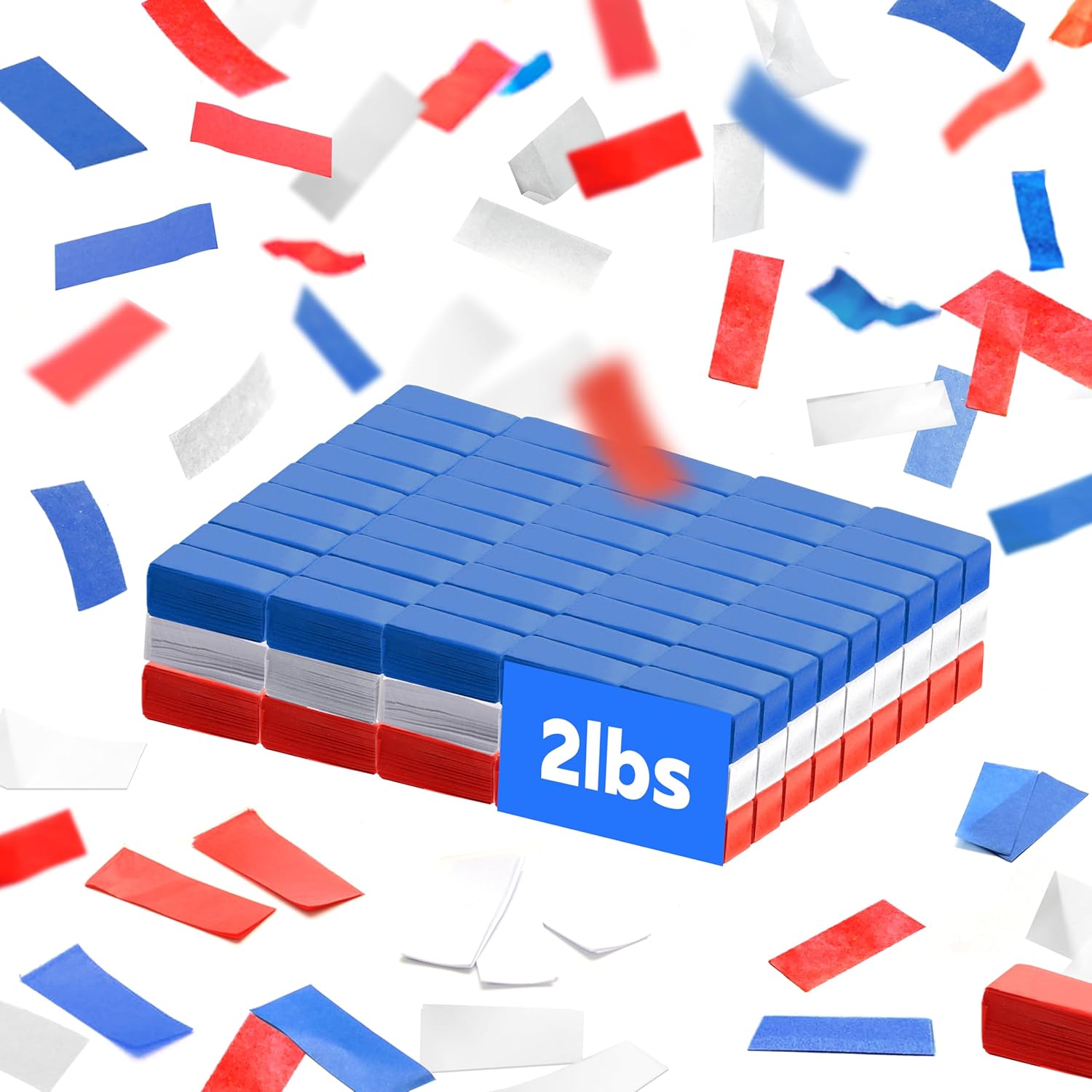 • πŸŽ‰ RED, WHITE & BLUE - Contains vibrant red, white & blue confetti paper that can be used with our Confetti Launcher Machine with Remote Control.