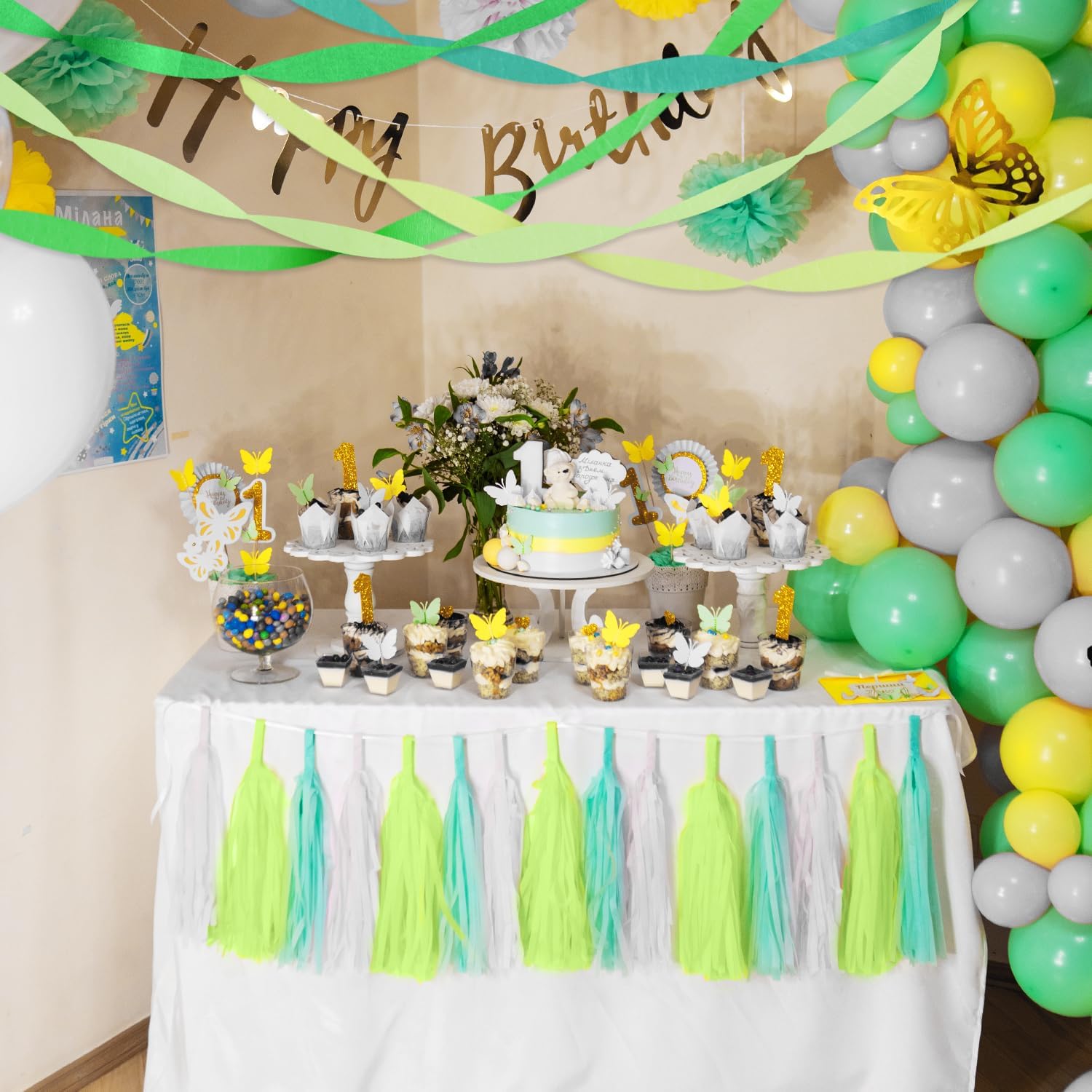 • 【Multiple Applications】Crepe Paper Streamers are an all-purpose decoration for all types of events! Green and White Streamers are great for decorating tables, walls, door frames, and lots more. Green Streamers Party Decorations are suitable for birthday, bachelorette, graduation, Farewell, Disco, Tropical Jungle theme, school ball party, wedding, bridal baby shower garland decoration, party photo props, nursery christening, dinosaur parties, St. Patrick's Day, Arbor Day, Fiesta or Mexican party.
