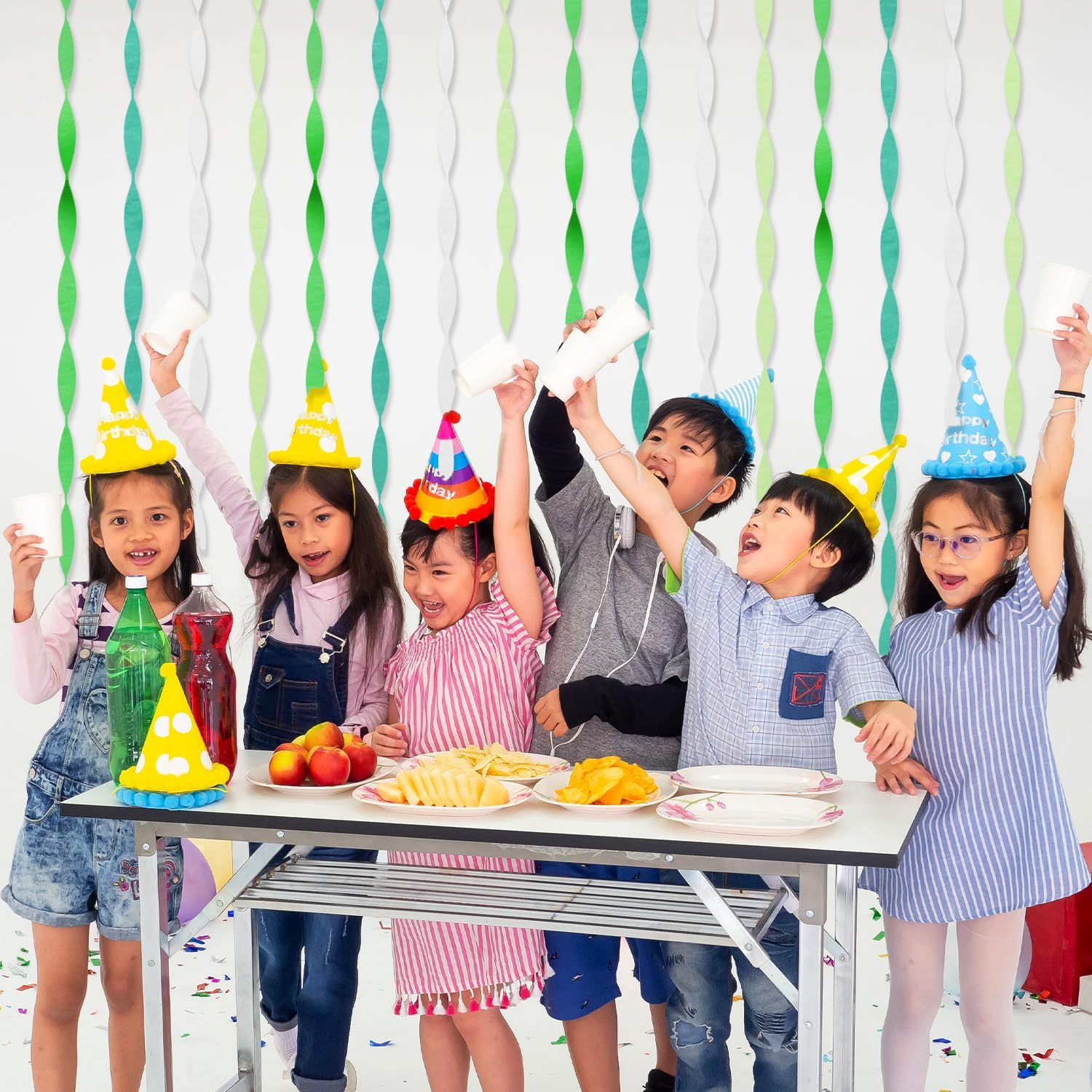 • 【Easy To Use】These Green Streamers Birthday Decorations are Pre-rolled, neatly strapped, easy to open and ready to use, just hang them from ceilings to create a tent effect or twist them together into spirals, and match different colors to give your celebration a customized look. You can also stick the Papel Crepe on the ceiling, the wall, or even place this Crepe Paper in the corner at will, which can enhance the atmosphere of the party.