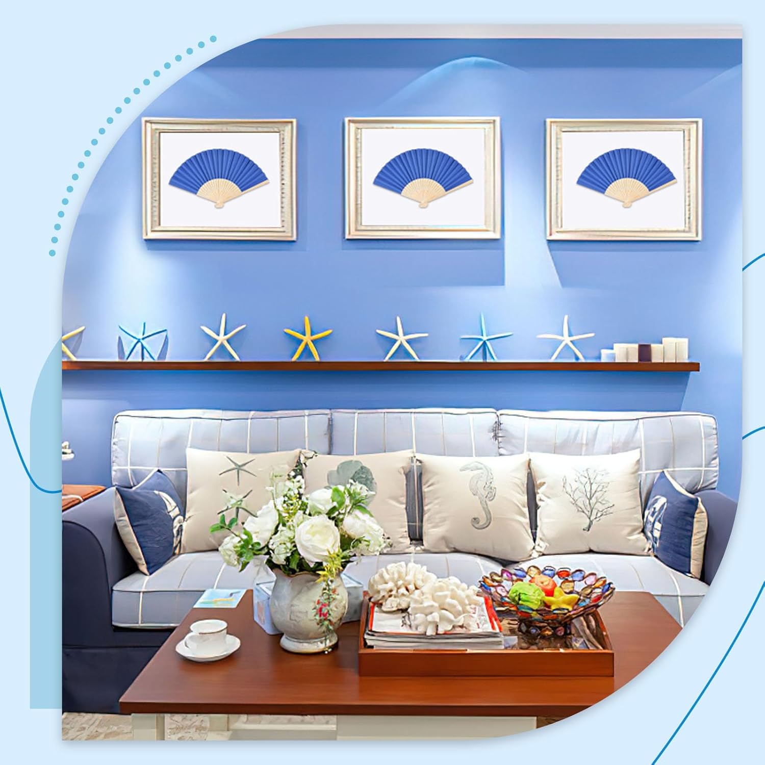 JOHOUSE 12 Pcs Paper Folding Hand Fans, 8.3 Inch Dark Blue Paper Fans Handheld for Wedding, Outdoor Party Favors, Baby Shower Decorations, Photography Prop