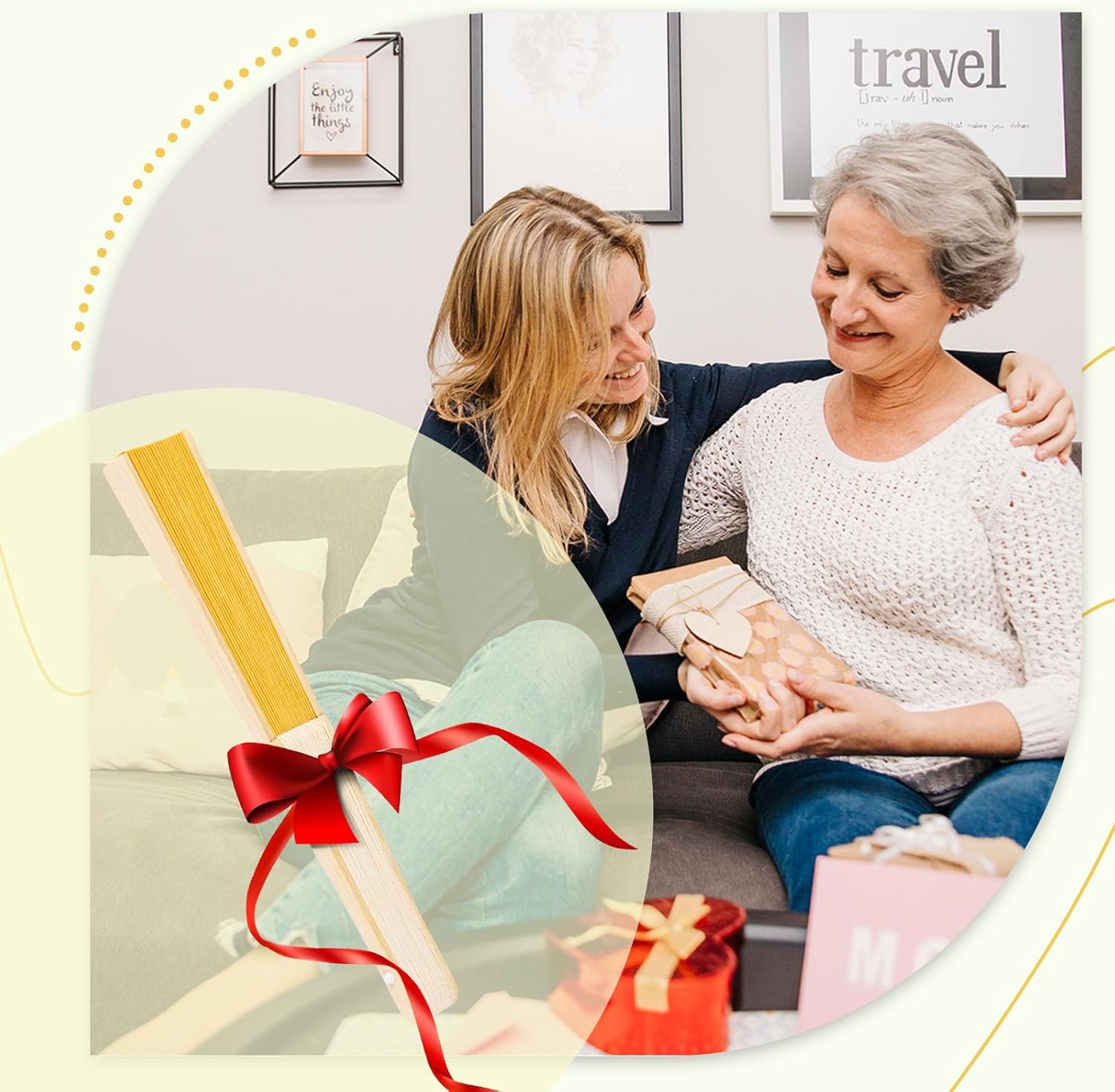 • Natural Material · Feel the Breeze – Crafted with Inner Pith Bamboo and apricot yellow paper, these hand fans showcase the natural bamboo texture with a smooth, flexible design. As real bamboo is used, small imperfections may appear but can be gently smoothed without affecting use. Each fan provides refreshing airflow while serving as a stylish decorative detail.